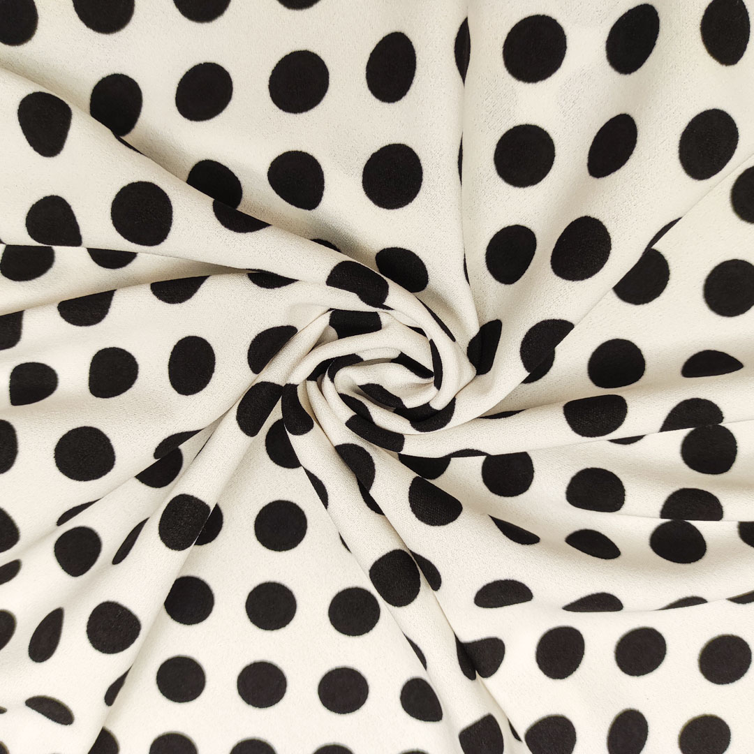 Tessuto Scuba Crepe a fantasia motivo pois bianco – nero
