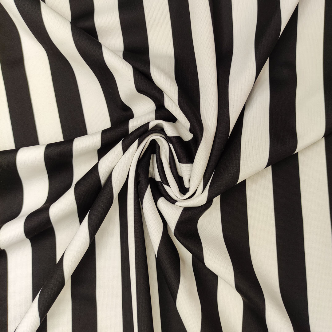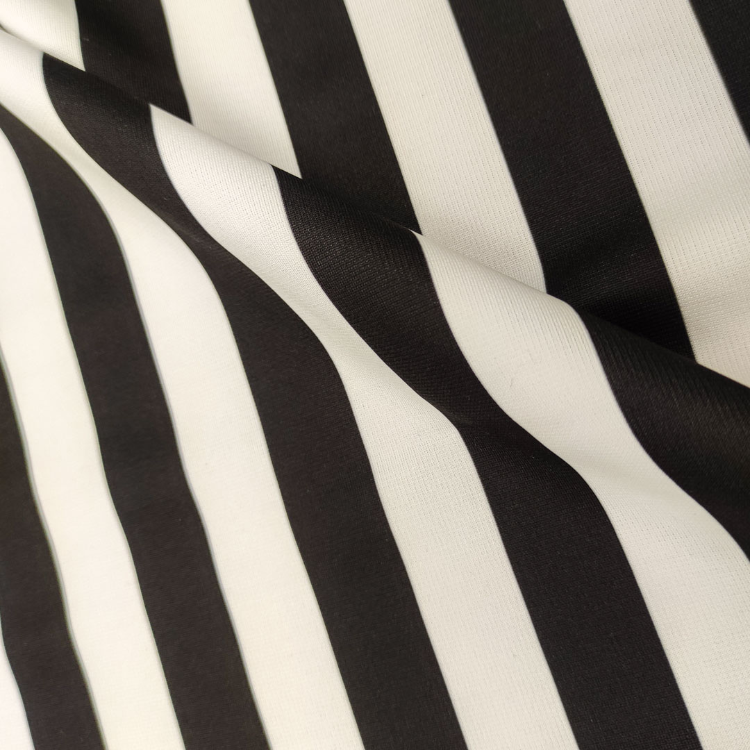 Tessuto Scuba Crepe a fantasia motivo rigato bianco – nero