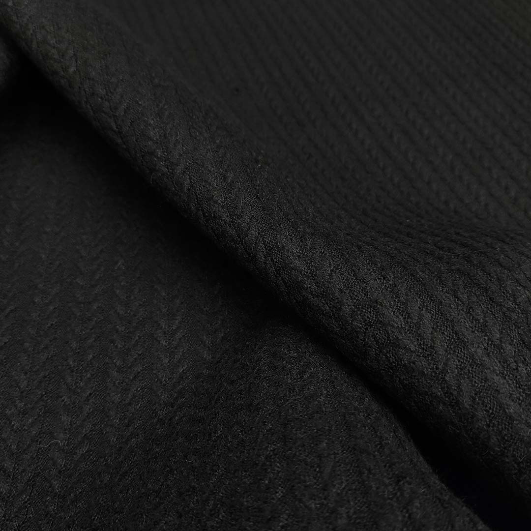 Tessuto Neoprene doppiato con maglia mano cashmere motivo Treccia tinta unita nero