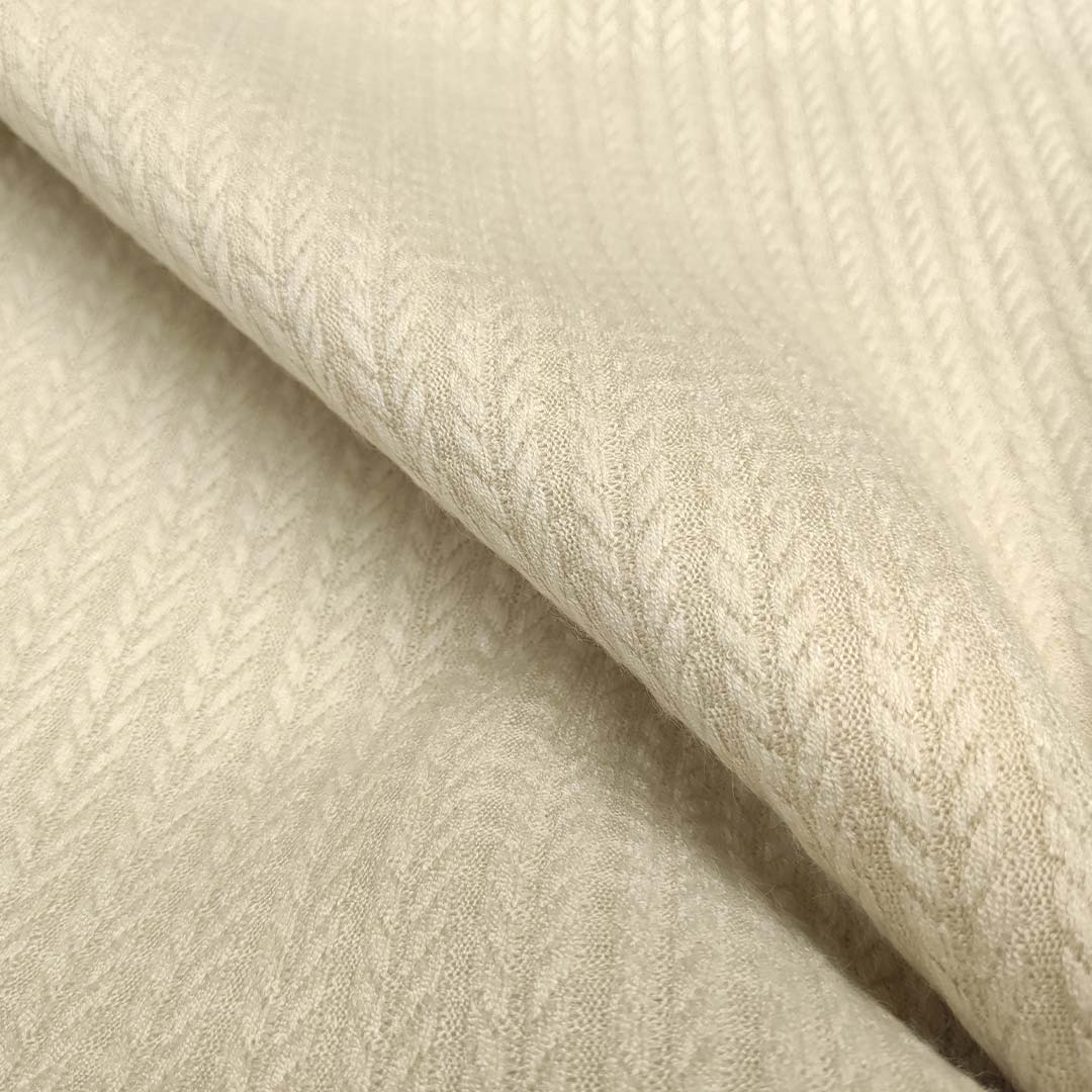 Tessuto Neoprene doppiato con maglia mano cashmere motivo Treccia tinta unita panna