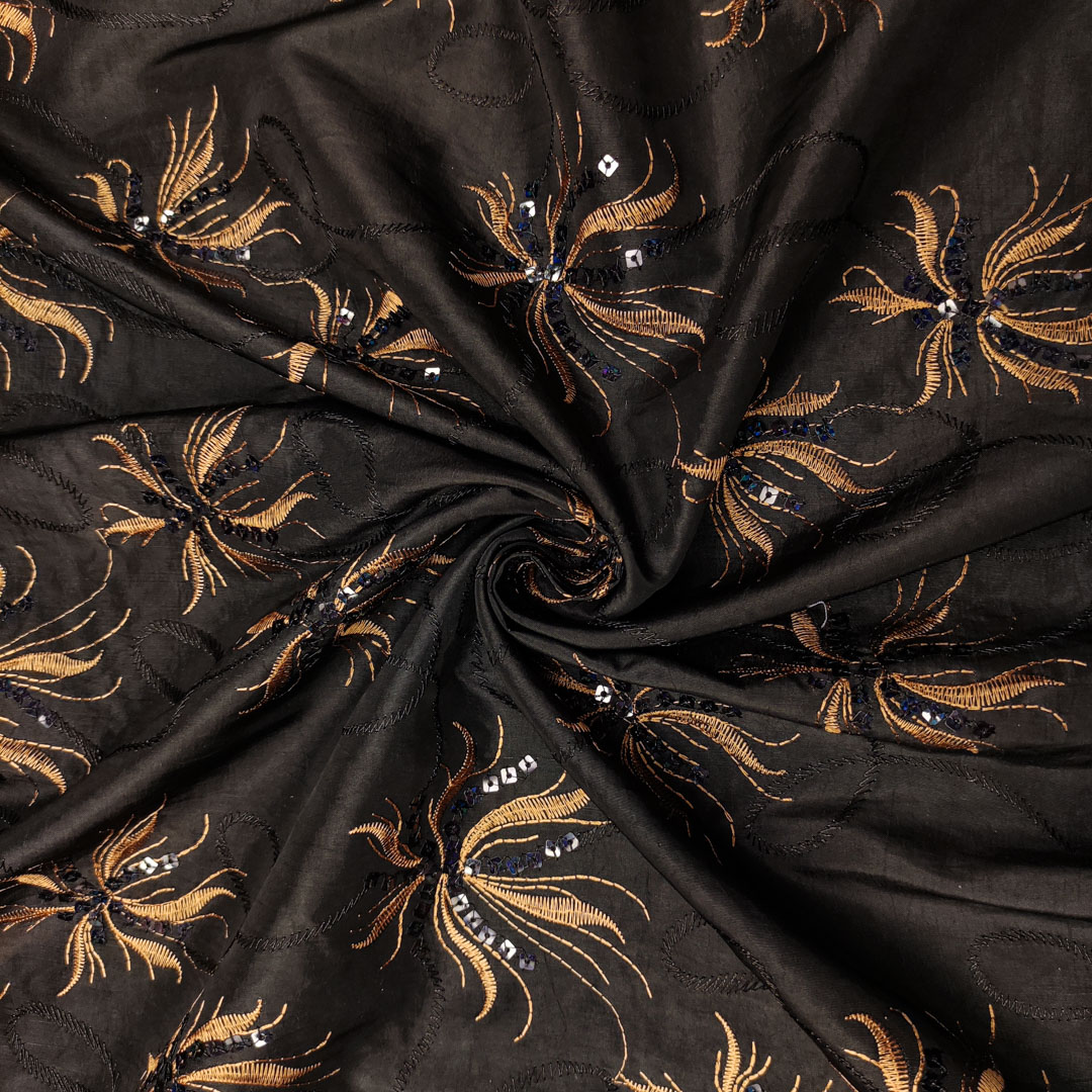 Tessuto Taffettà ricamato con paillettes nero – bronzo