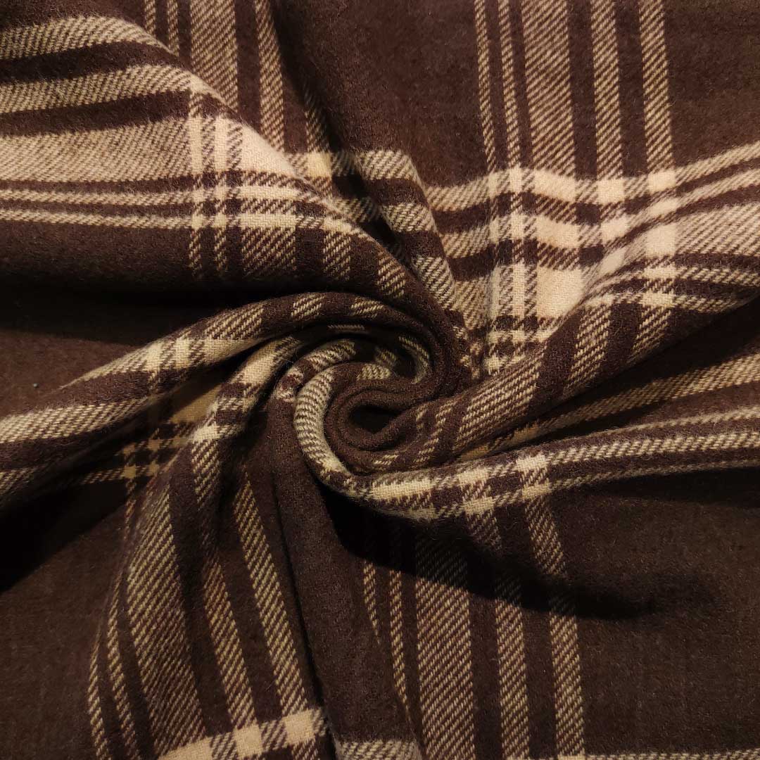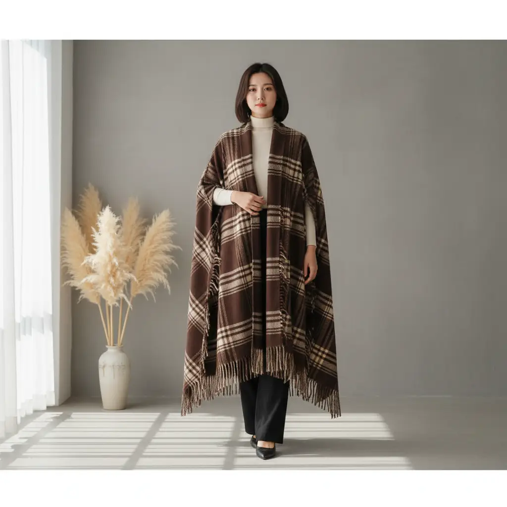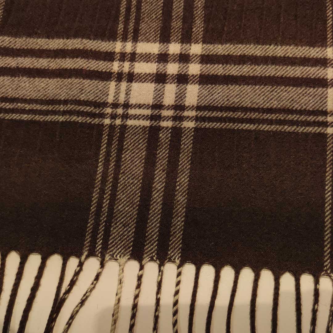 Tessuto pettinato mano lana con frange ai bordi motivo quadri dalla mano morbida, rasata e calda, si presta alla creazione di capi da utilizzare nella stagione autunno – inverno come: mantelle, sciarpe e cappe.