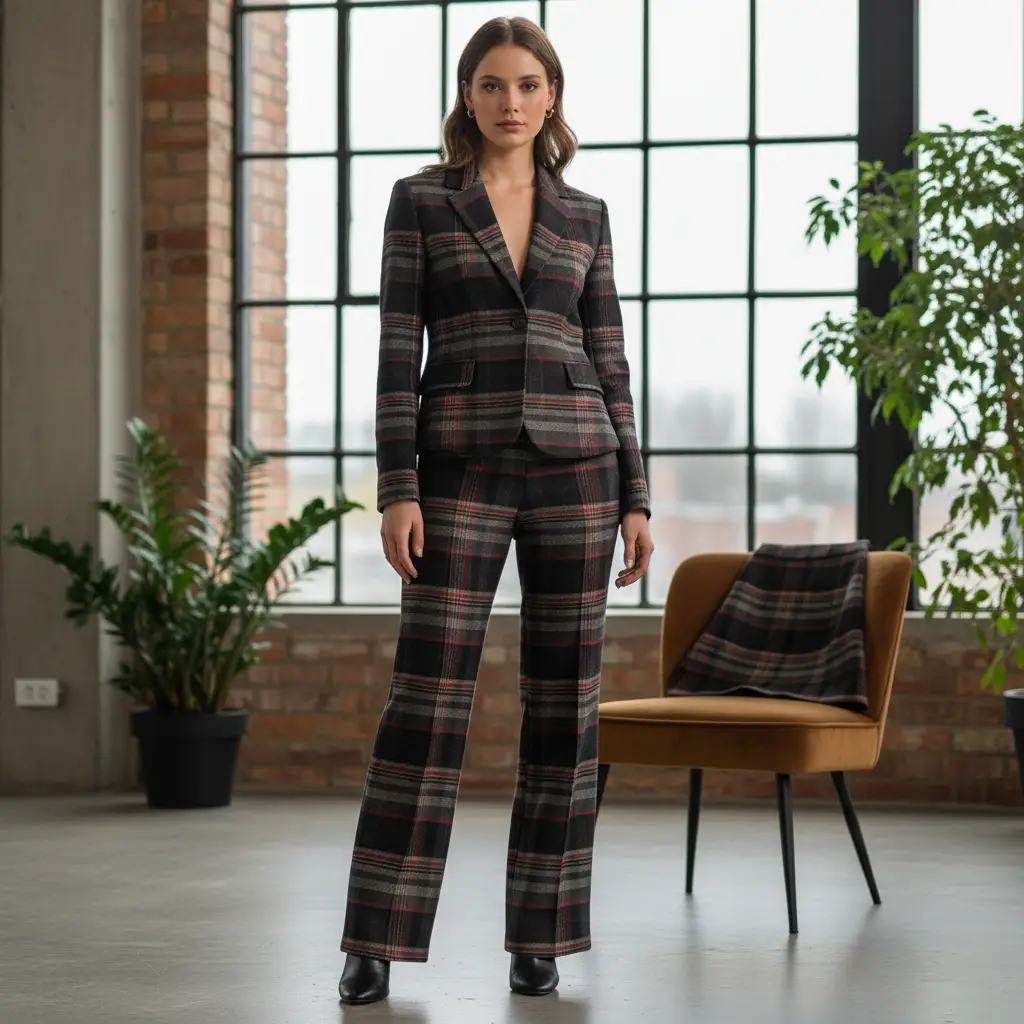 Tessuto pettinato mano lana elasticizzato motivo quadri nero – grigio – bordeaux