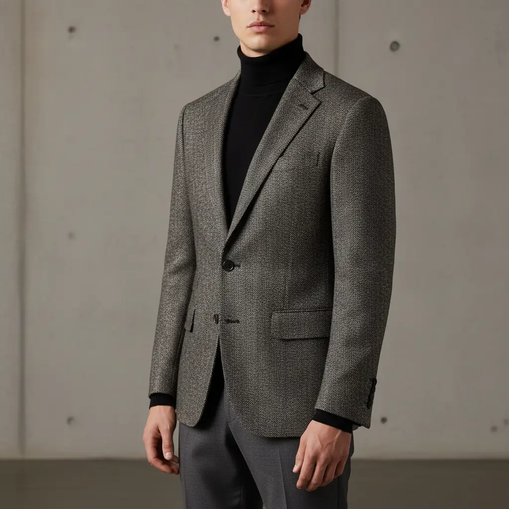 Tessuto pettinato mano lana elasticizzato motivo spigato sale e pepe grigio – nero