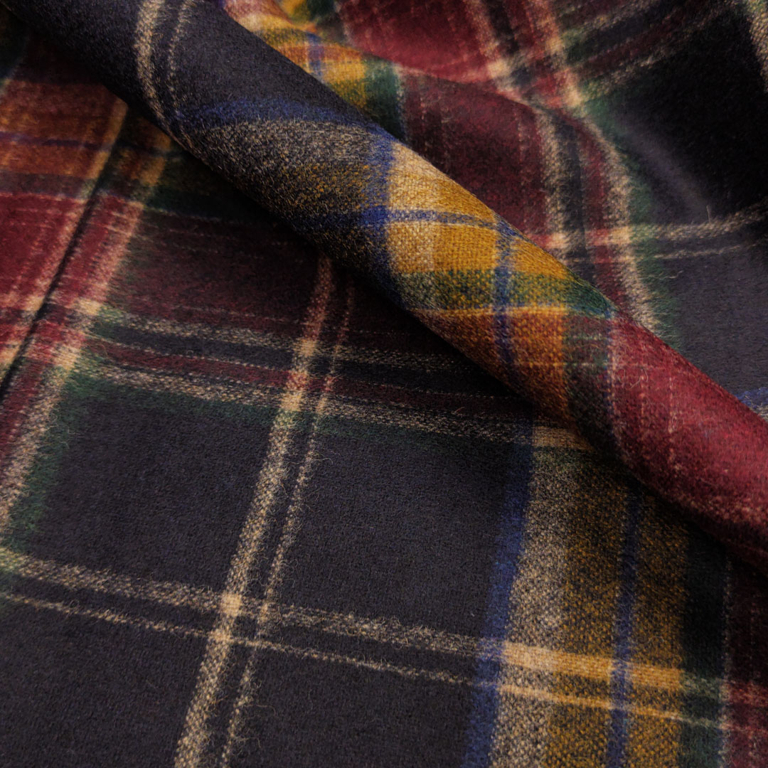 Tessuto pettinato mano lana motivo quadri blu – bordeaux – ocra