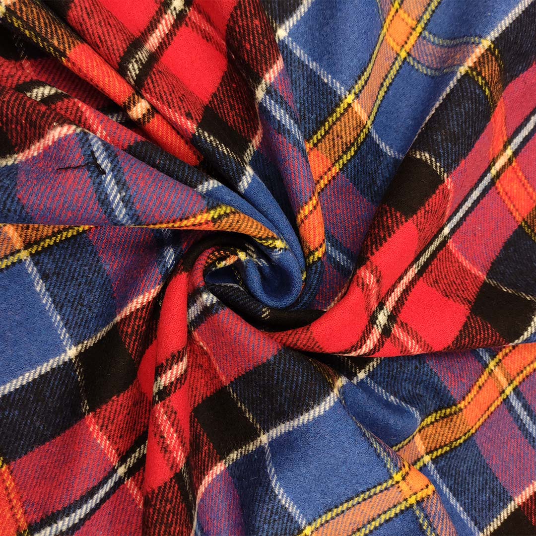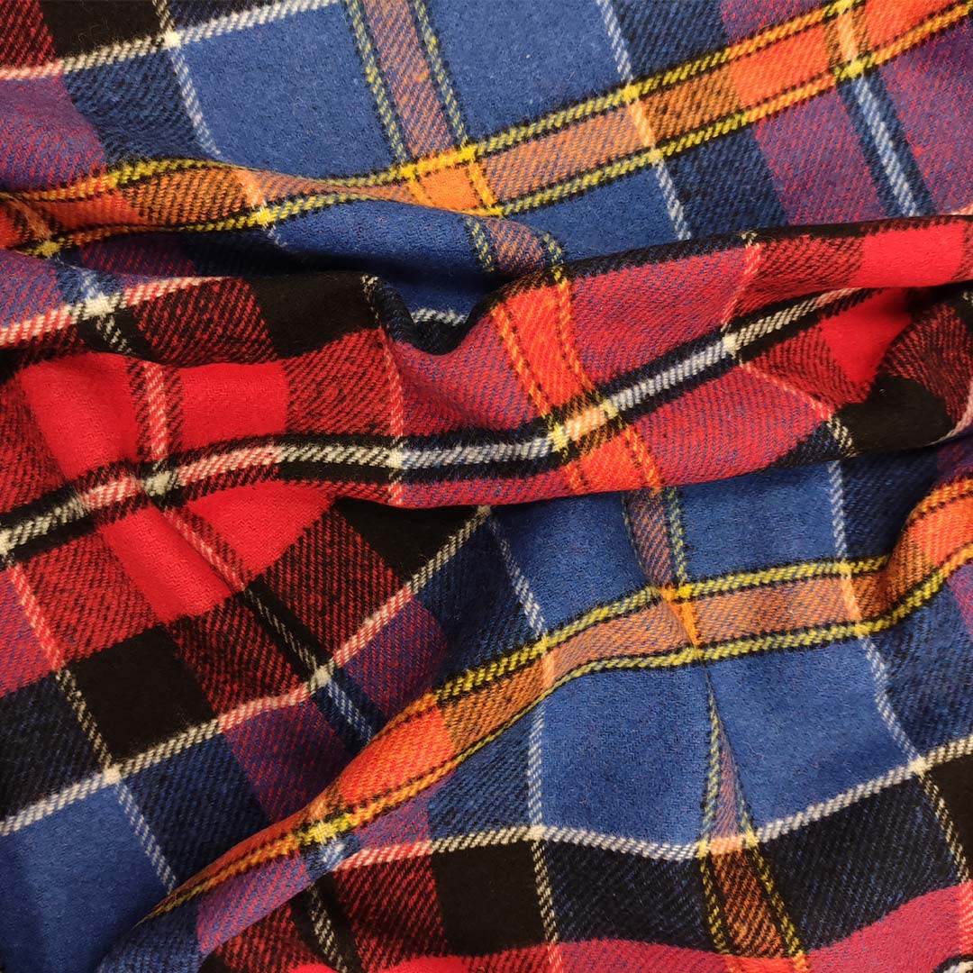 Tessuto pettinato mano lana motivo quadri blu elettrico – giallo – rosso – arancio