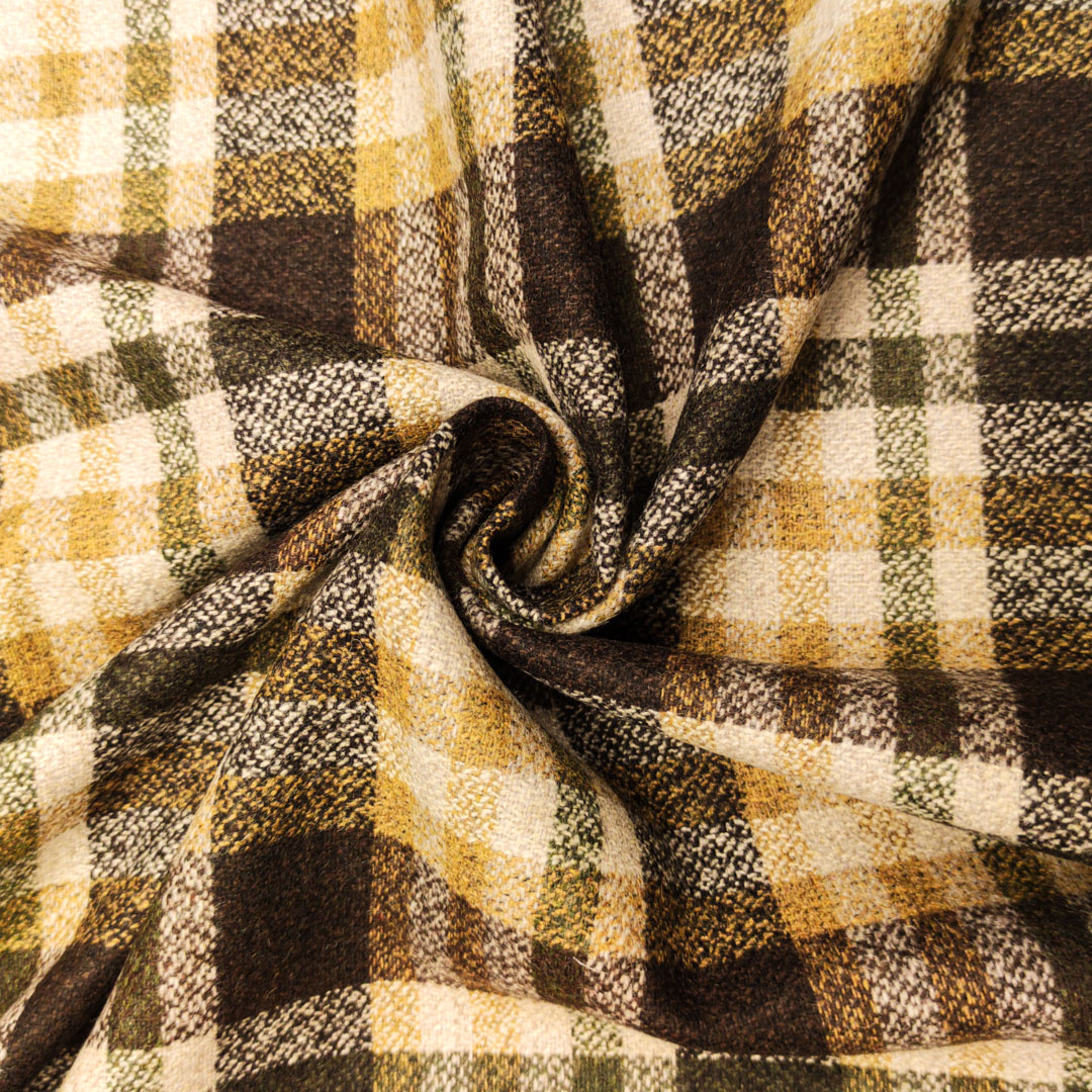 Tessuto pettinato mano lana motivo quadri marrone – cedro – verde – militare