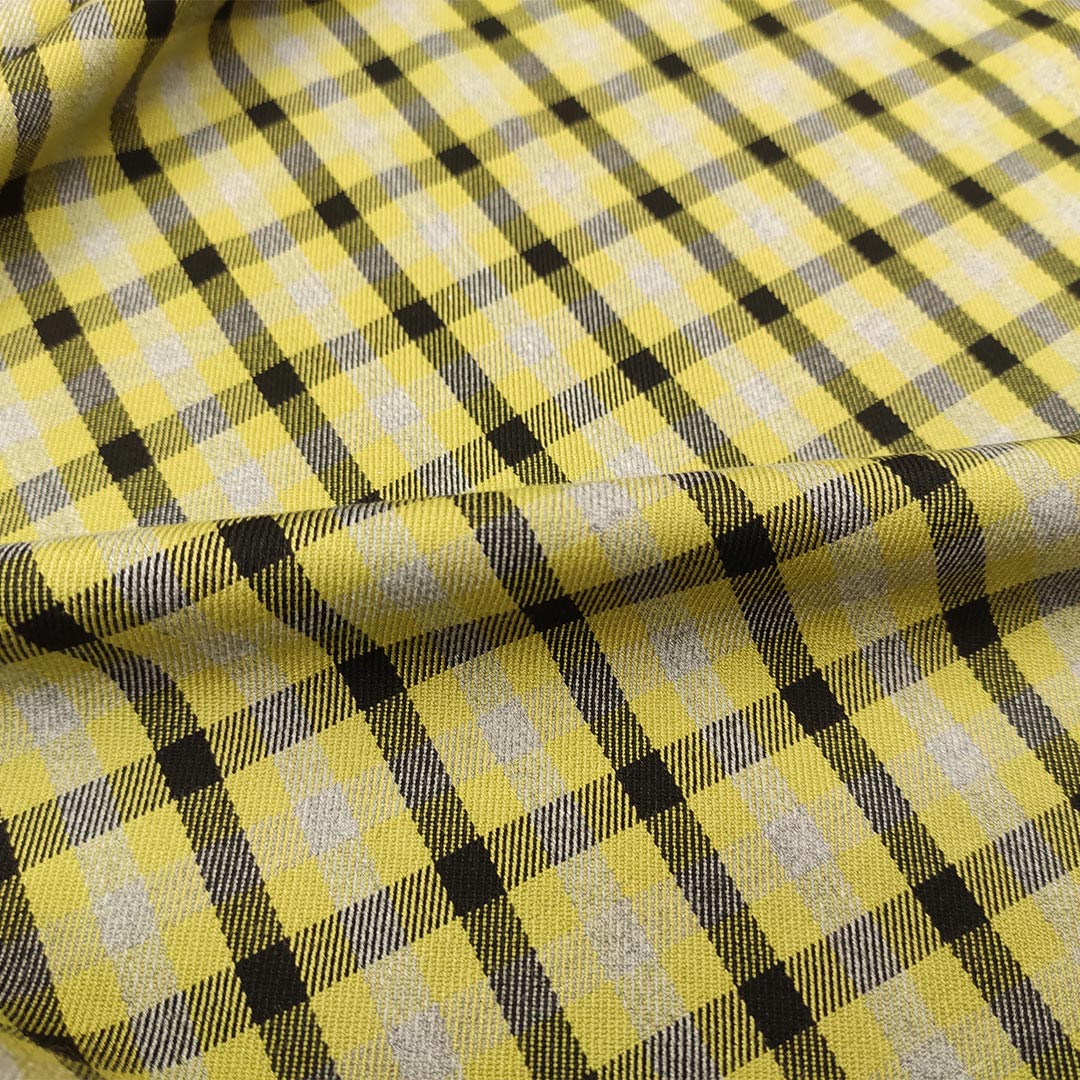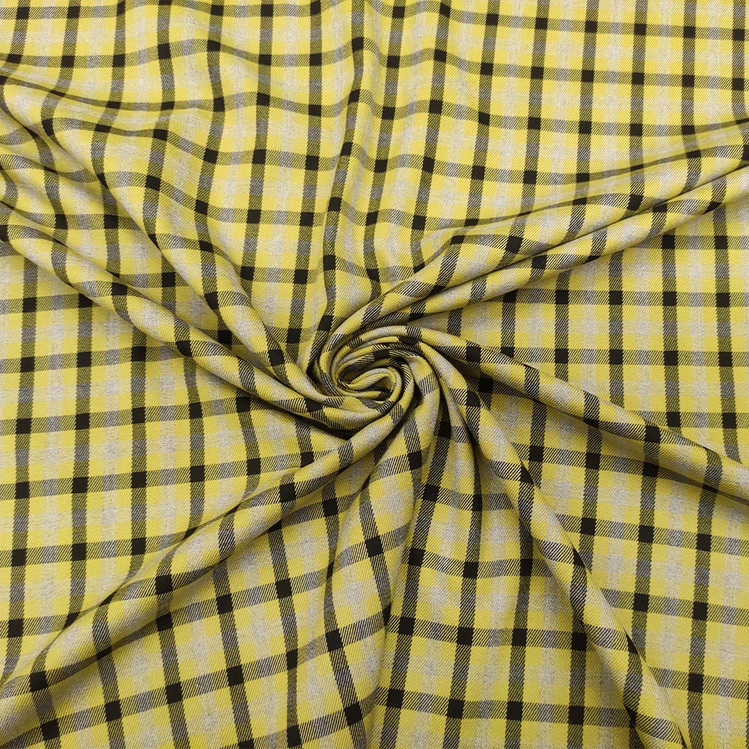 Tessuto pettinato motivo quadri dalla mano morbida, rasata e calda, leggermente elasticizzato si presta alla creazione di capi da utilizzare nella stagione autunno – inverno come: giacche, gonne, pantaloni, abiti e tailleur.