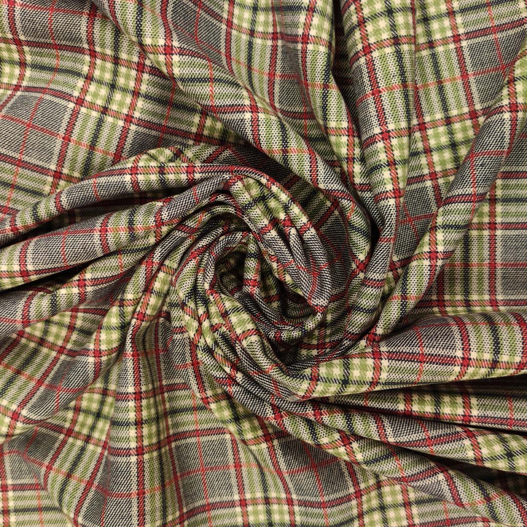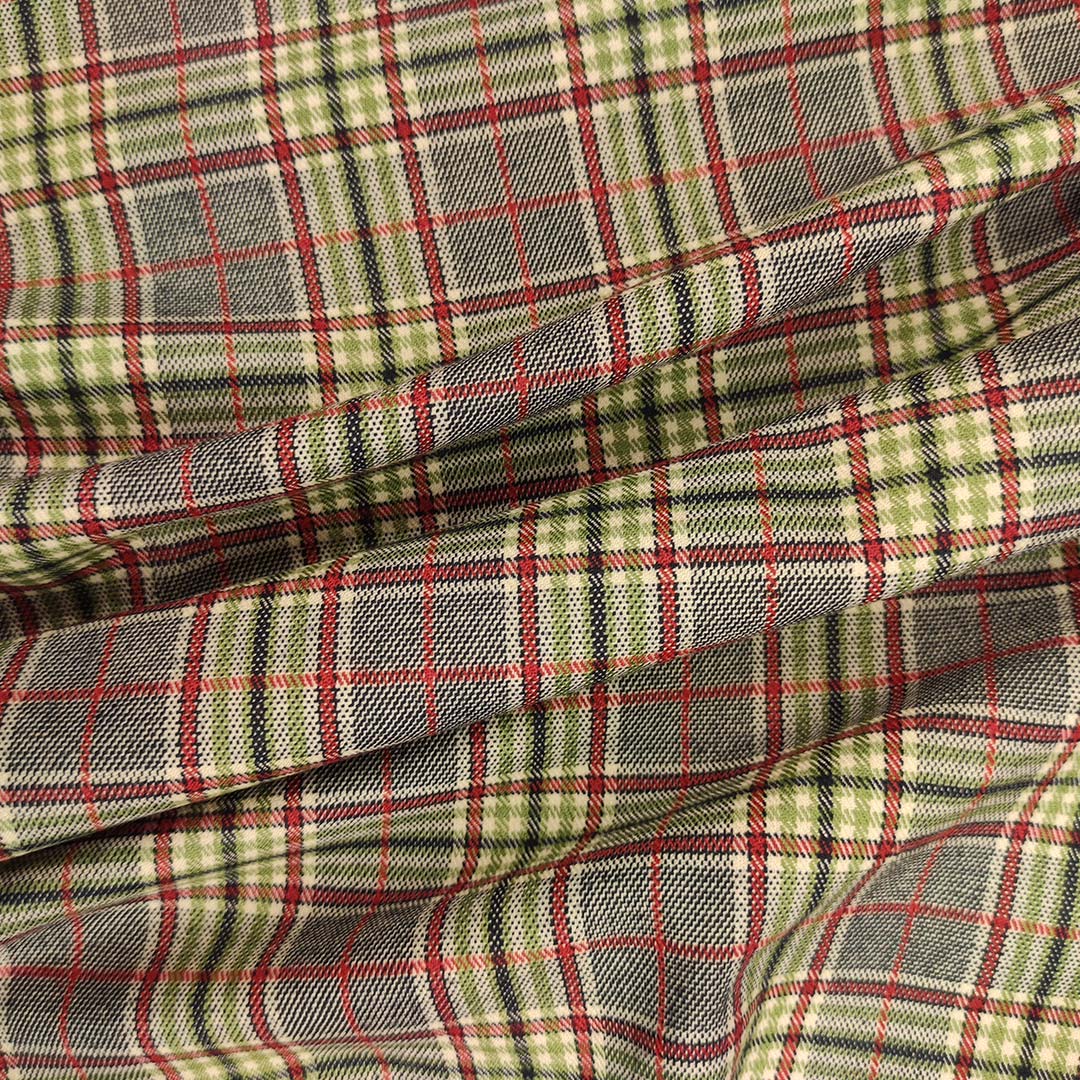 Tessuto pettinato motivo quadri grigio – verde – rosso – nero