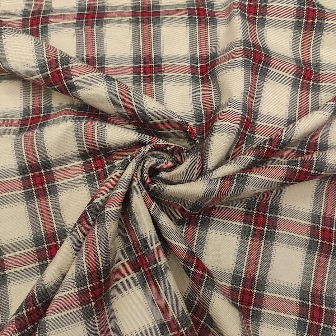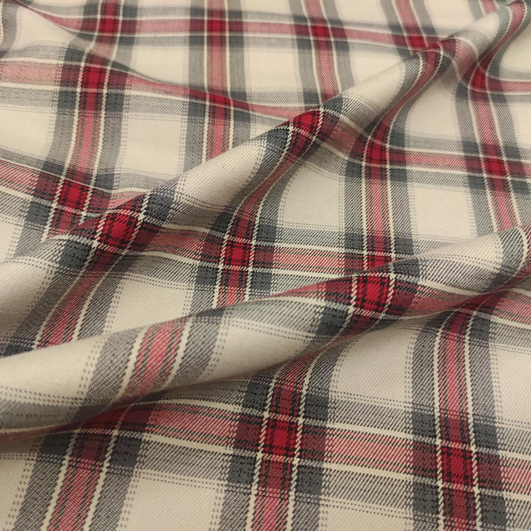 Tessuto pettinato motivo quadri panna – celeste – rosso