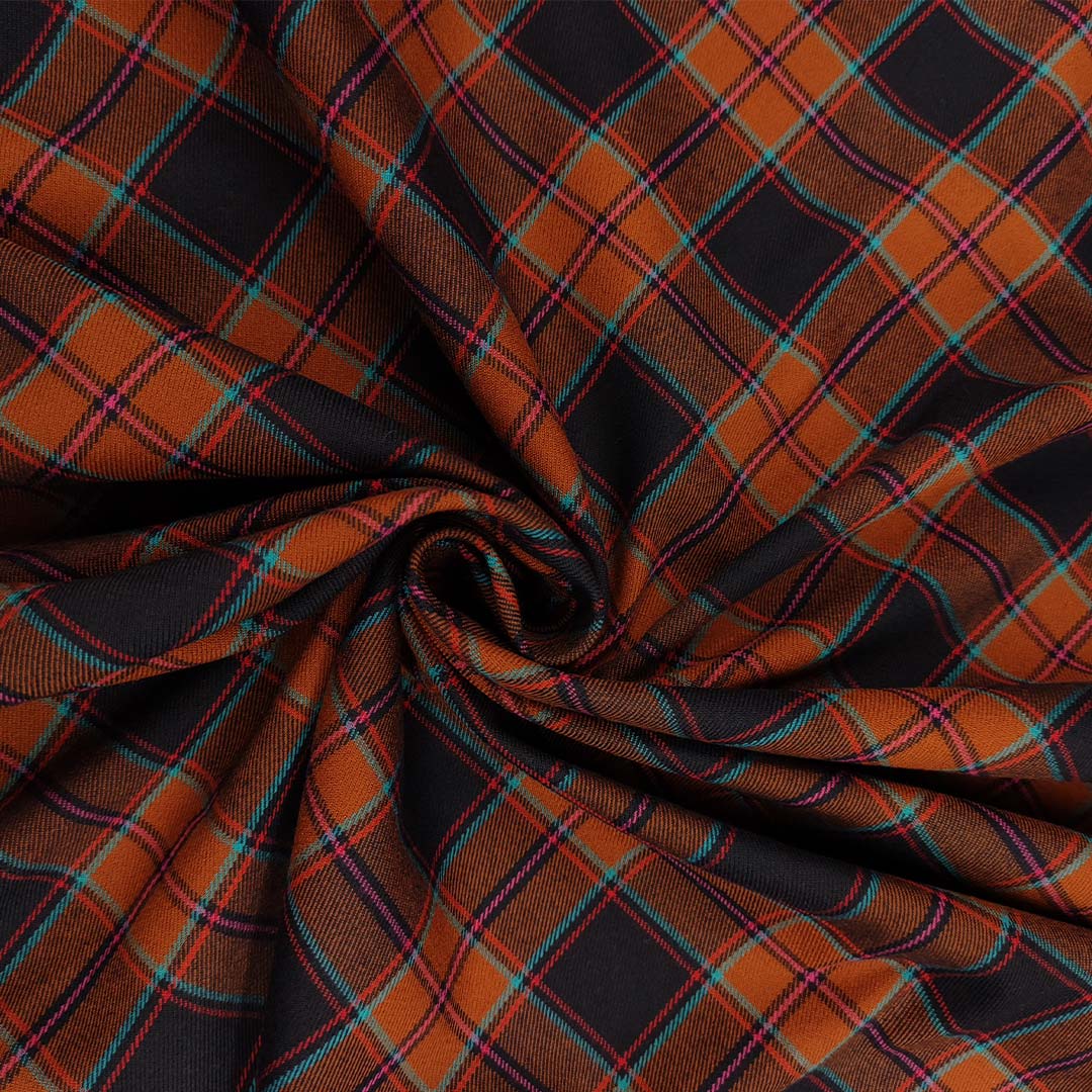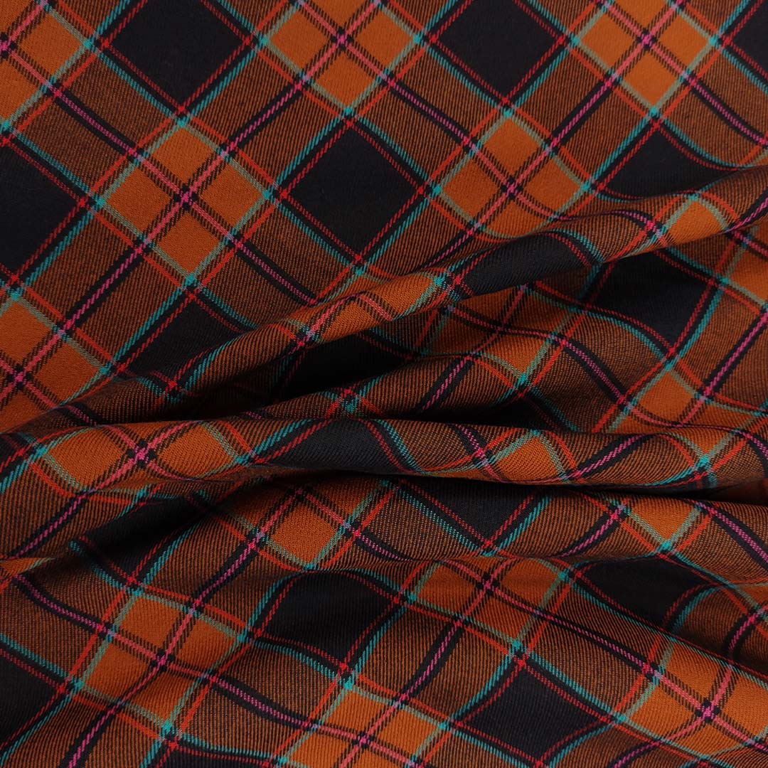 Tessuto pettinato motivo quadri ruggine – ciano – fucsia – blu