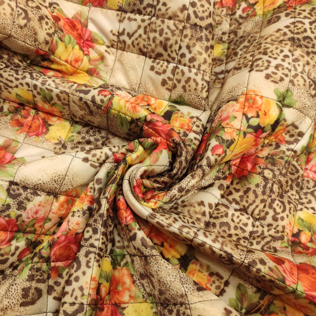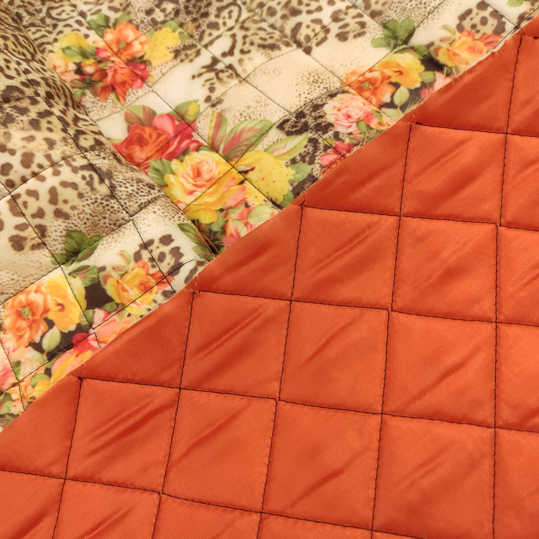 Tessuto Trapunta double face a fantasia motivo floreale giallo – beige – ruggine
