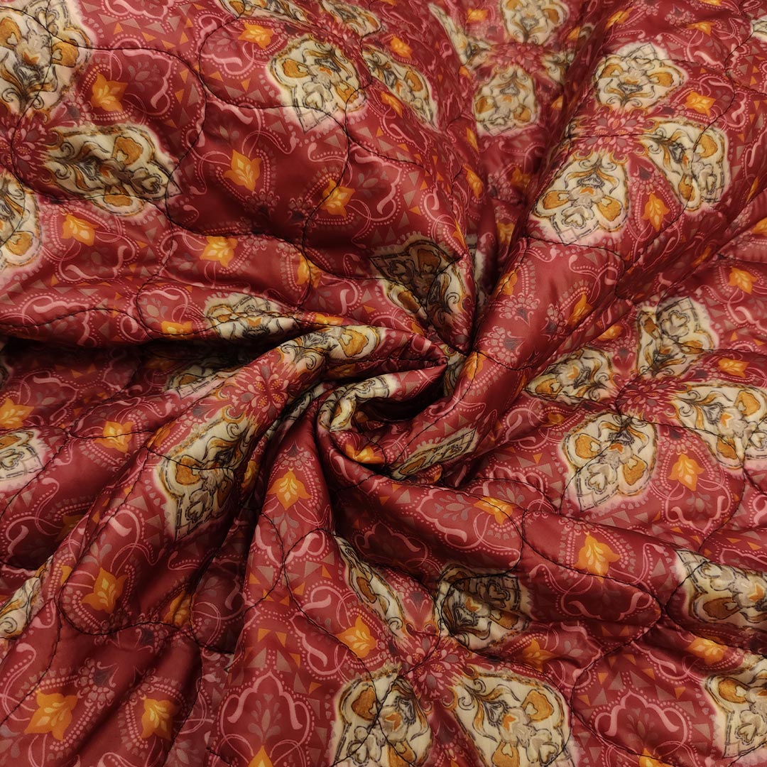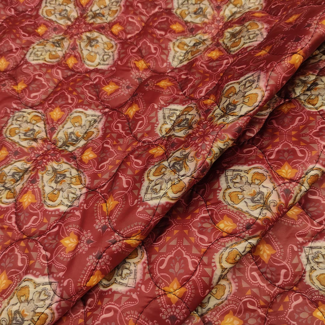 Tessuto Trapunta double face a fantasia motivo geometrico bordeaux – ocra – bianco