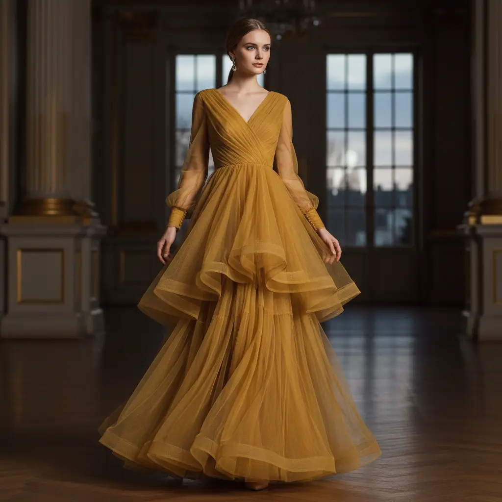 Tessuto Tulle bielastico tinta unita giallo senape