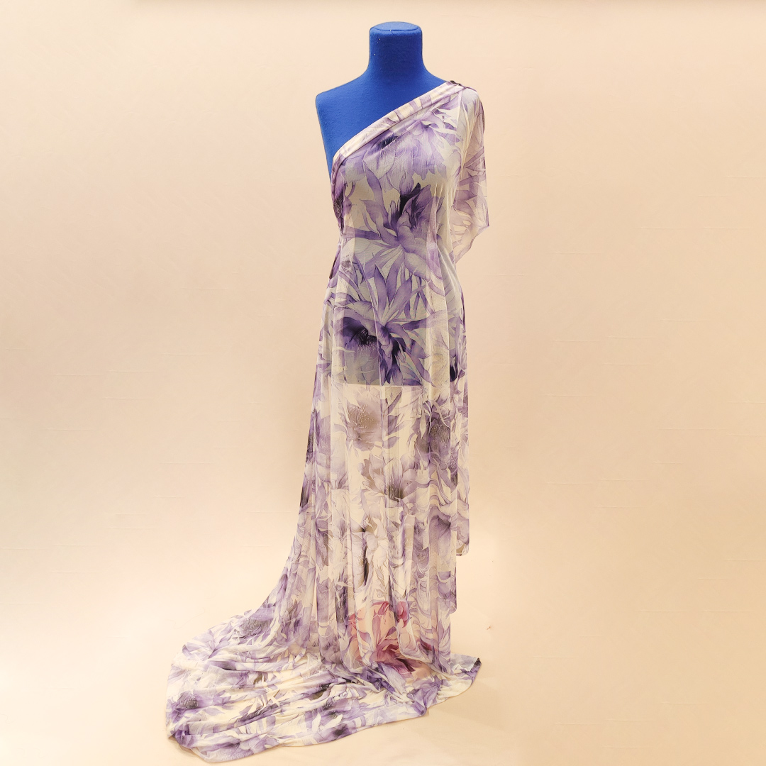 Tessuto Tulle elasticizzato a fantasia ideale per creare capi eleganti e brillanti.