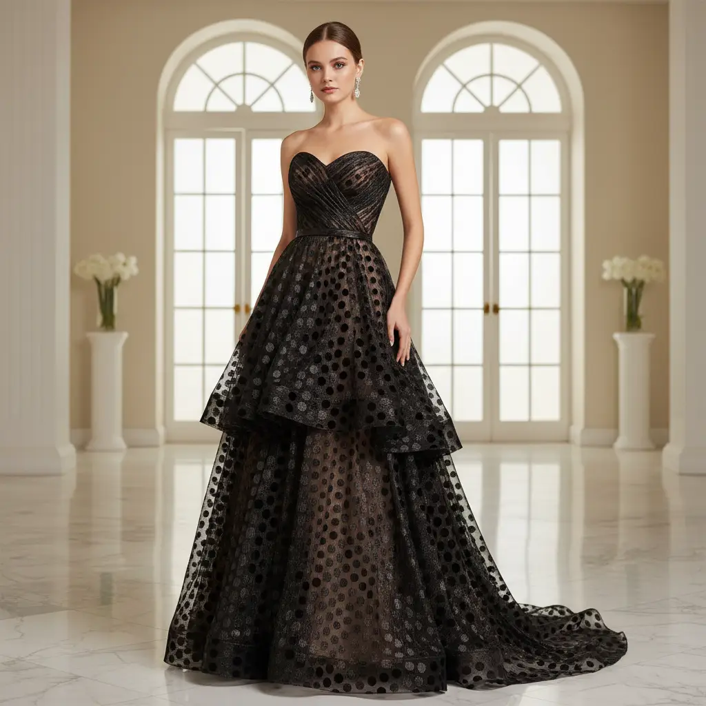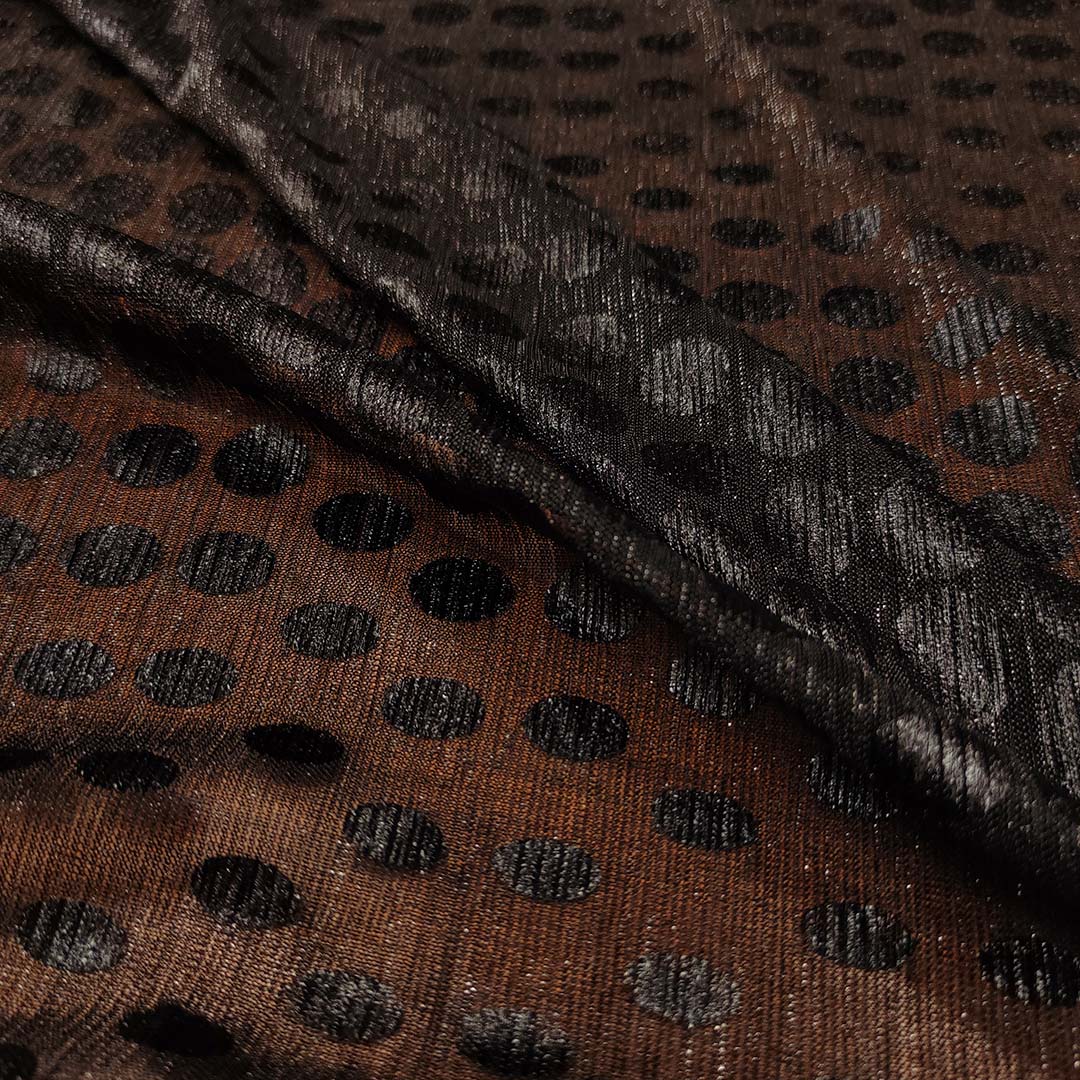 Tessuto tulle elasticizzato motivo pois nero