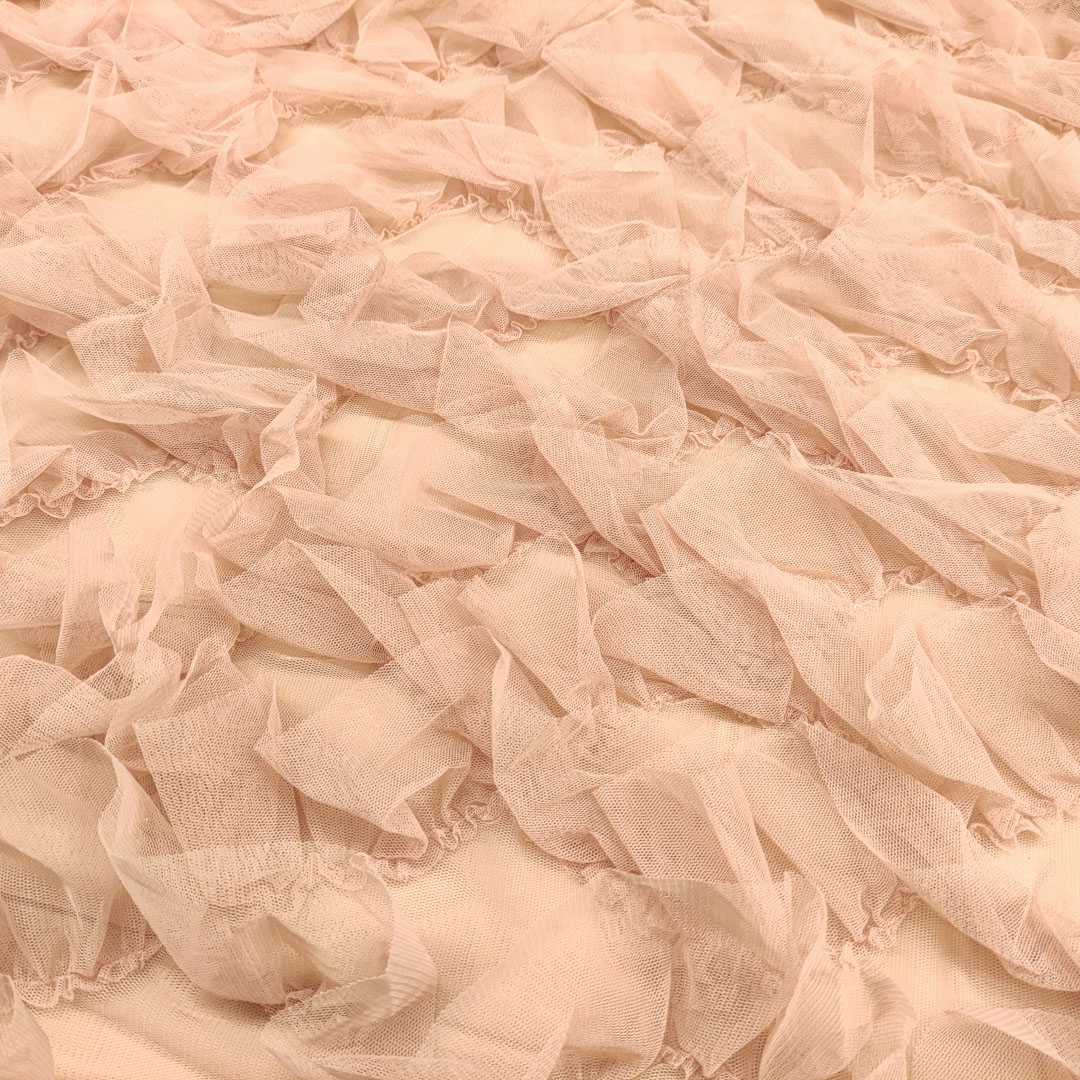 Tessuto Tulle mano seta con balze 3D in tulle tinta unita rosa phard