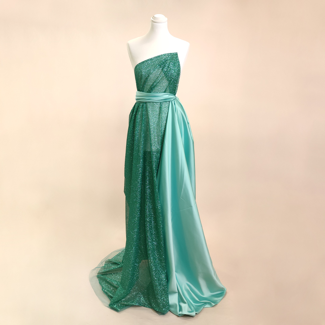 Tessuto Tulle mano seta con glitter dalla mano morbida e dall’aspetto lucente e scintillante, ideale per realizzare capi da cerimonia e per le grandi occasioni.