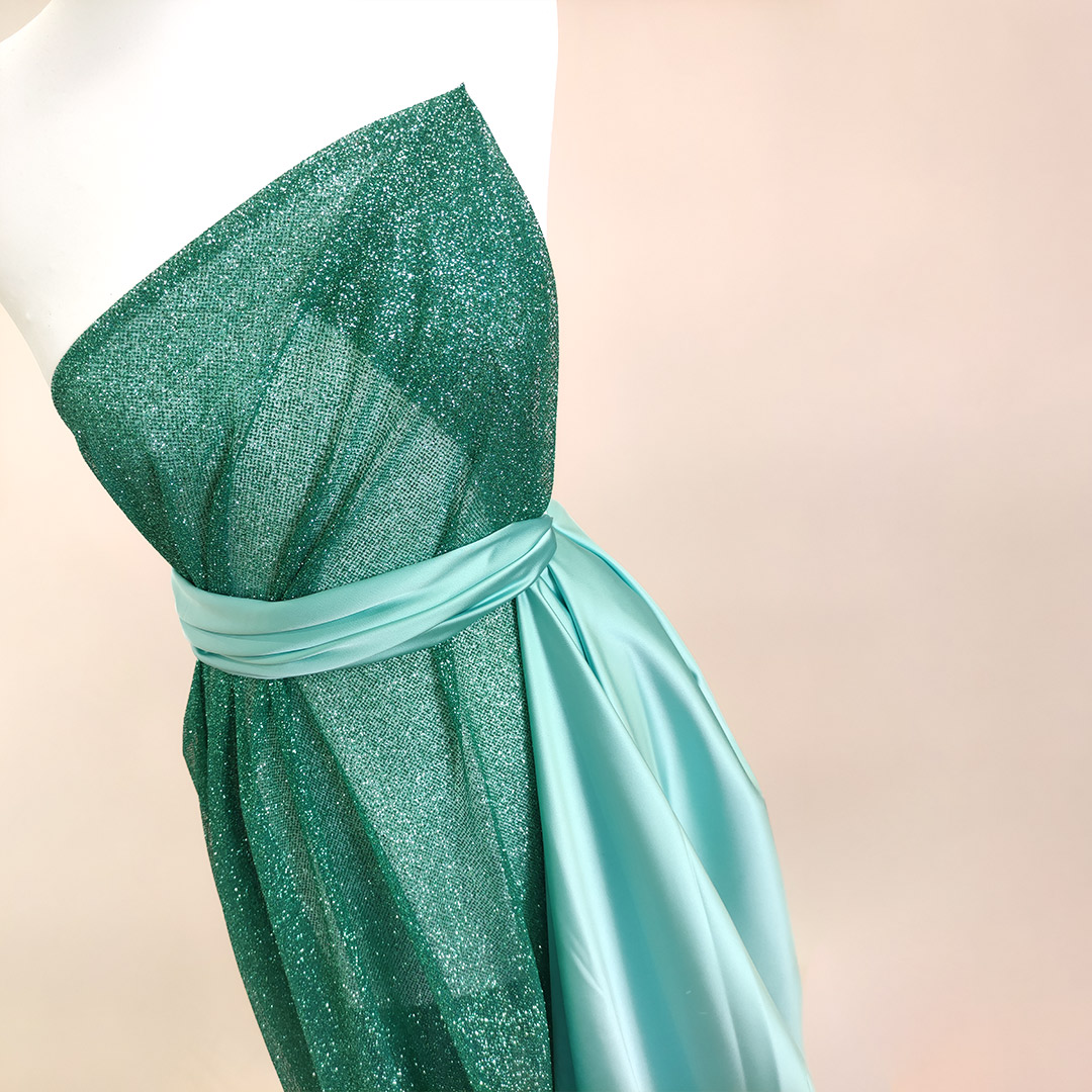 Tessuto Tulle mano seta con Glitter tinta unita verde tiffany