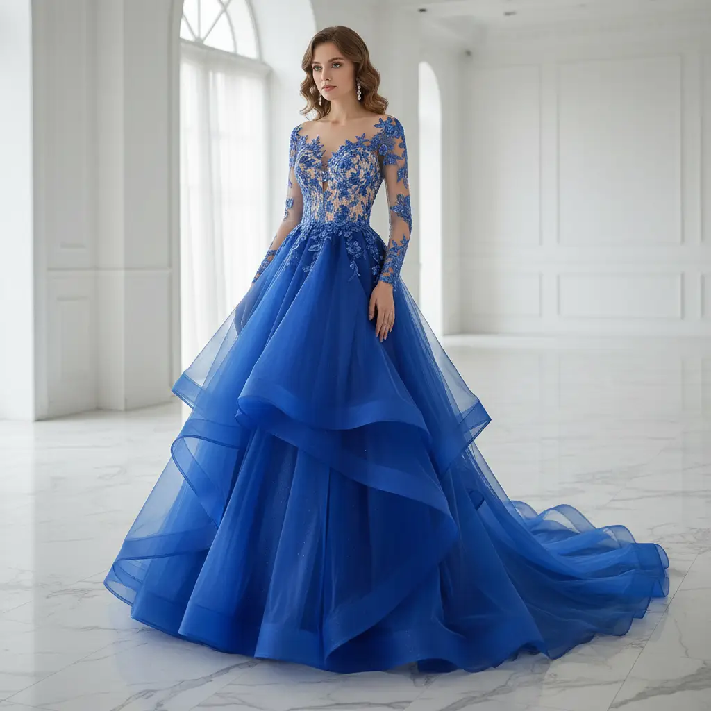 Tessuto Tulle mano seta morbido tinta unita blu elettrico