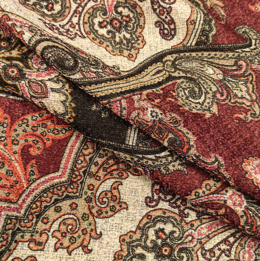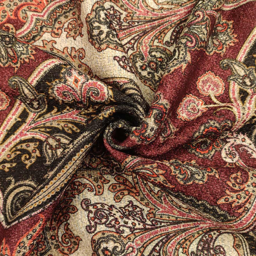 Tessuto Tweed bouclè a fantasia motivo floreale cashmere bordeaux – nero – grigio