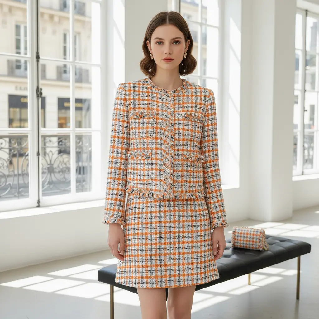 Tessuto Tweed Bouclé in cotone dalla mano morbida e compatta, si presta alla realizzazione di capi esclusivi ed eleganti come l’iconica giacca in tweed della maison Chanel, si presta anche alla creazione di: gonne, abiti e borse.