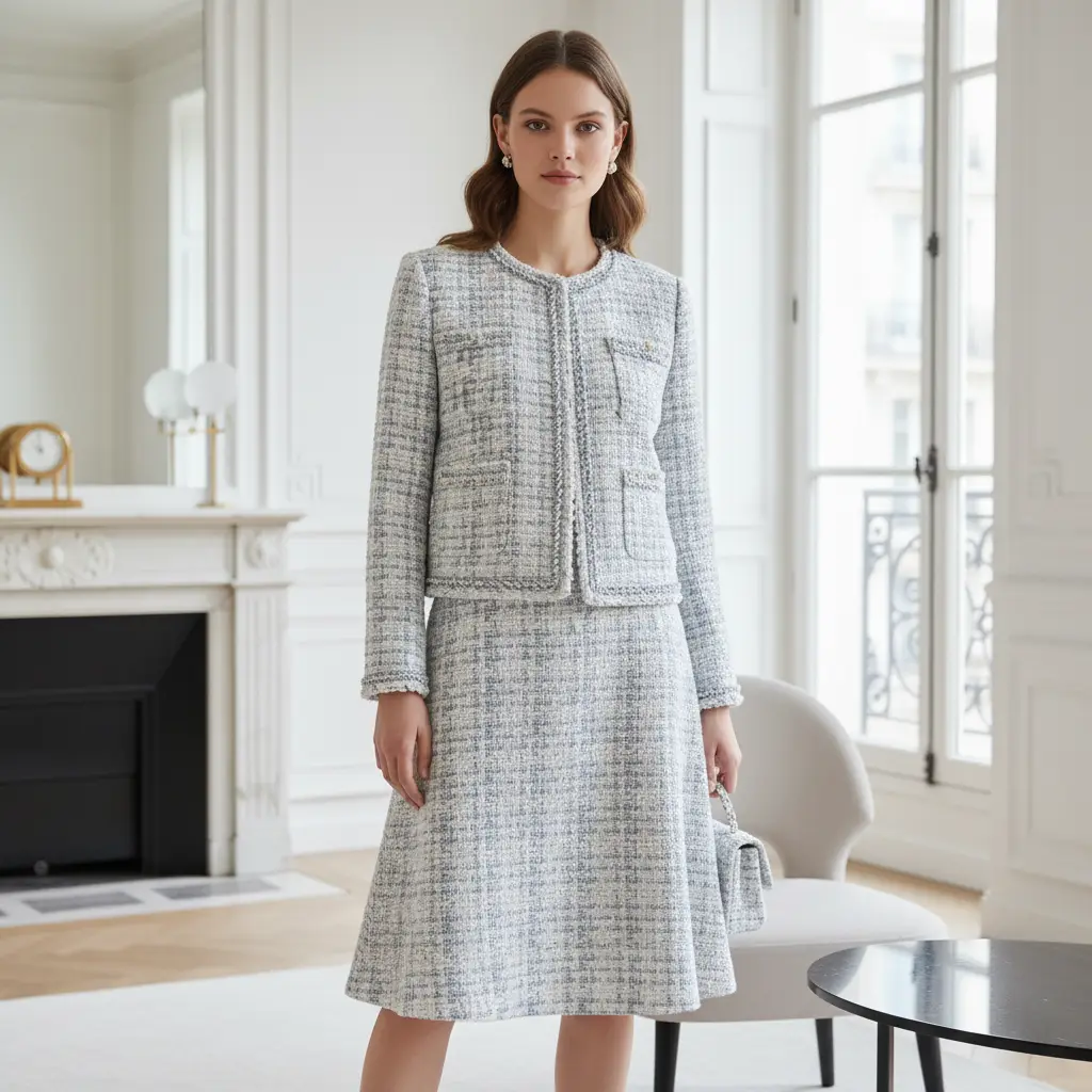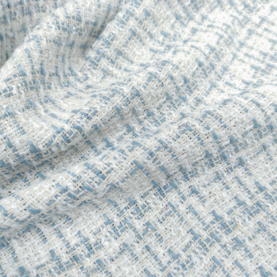 Tessuto Tweed Bouclé in cotone dalla mano morbida e compatta, si presta alla realizzazione di capi esclusivi ed eleganti come l’iconica giacca in tweed della maison Chanel, si presta anche alla creazione di: gonne, abiti e borse esclusive e ricercate.