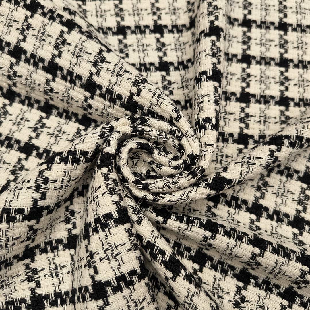 Tessuto Tweed Bouclé in cotone bianco – nero