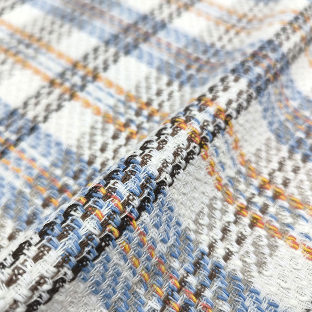 Tessuto Tweed Bouclé in cotone celeste – arancio – bainco – nero