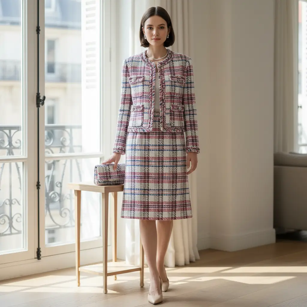Tessuto Tweed Bouclé in cotone dalla mano morbida e compatta, si presta alla realizzazione di capi esclusivi ed eleganti come l’iconica giacca in tweed della maison Chanel, si presta anche alla creazione di: gonne, abiti e borse.