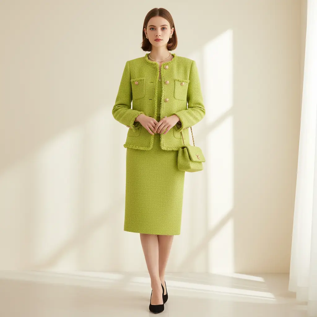 Tessuto Tweed Bouclé in cotone dalla mano morbida e compatta, si presta alla realizzazione di capi esclusivi ed eleganti come l’iconica giacca in tweed della maison Chanel, si presta anche alla creazione di: gonne, abiti e borse esclusive e ricercate.