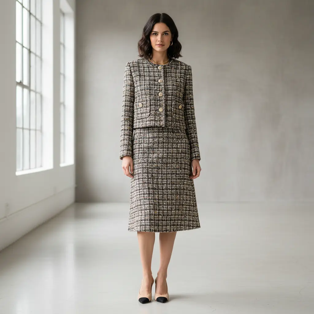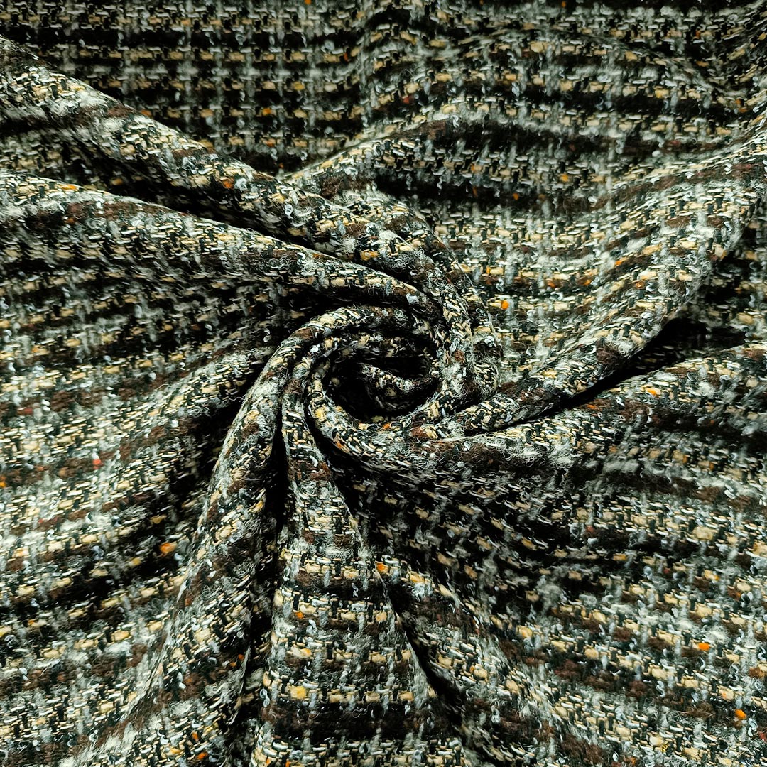 Tessuto Tweed Bouclé in lana dalla mano morbida e compatta, si presta alla realizzazione di capi esclusivi ed eleganti come l’iconica giacca in tweed della maison Chanel, si presta anche alla creazione di: gonne, abiti e borse esclusive e ricercate.