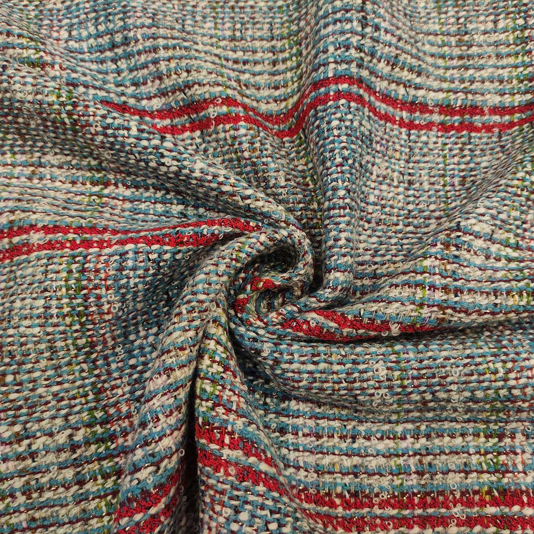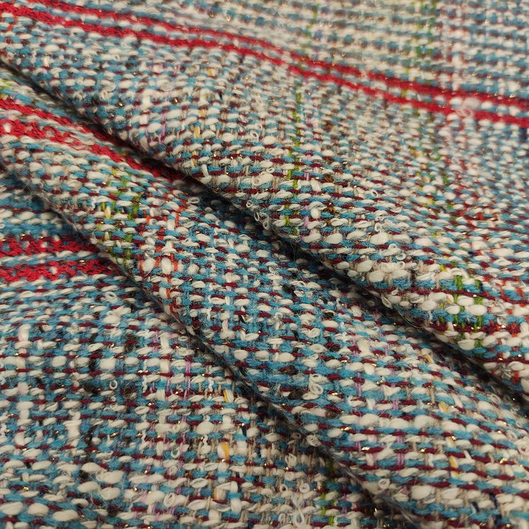 Tessuto Tweed Bouclé in lana dalla mano morbida e compatta, si presta alla realizzazione di capi esclusivi ed eleganti come l’iconica giacca in tweed della maison Chanel, si presta anche alla creazione di: gonne, abiti e borse esclusive e ricercate.