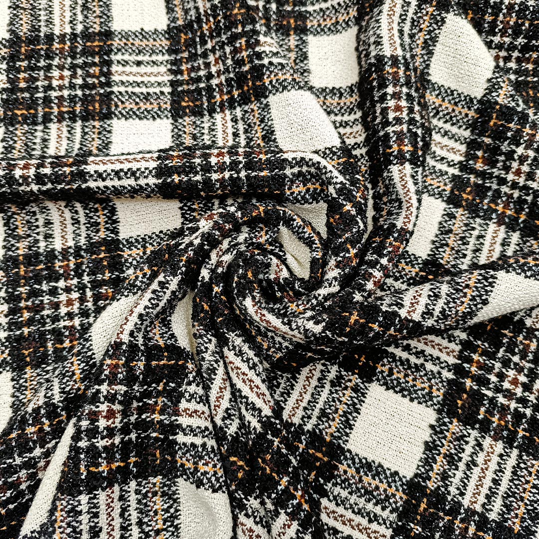 Tessuto Tweed Bouclé lurex motivo quadri nero – bianco – nude