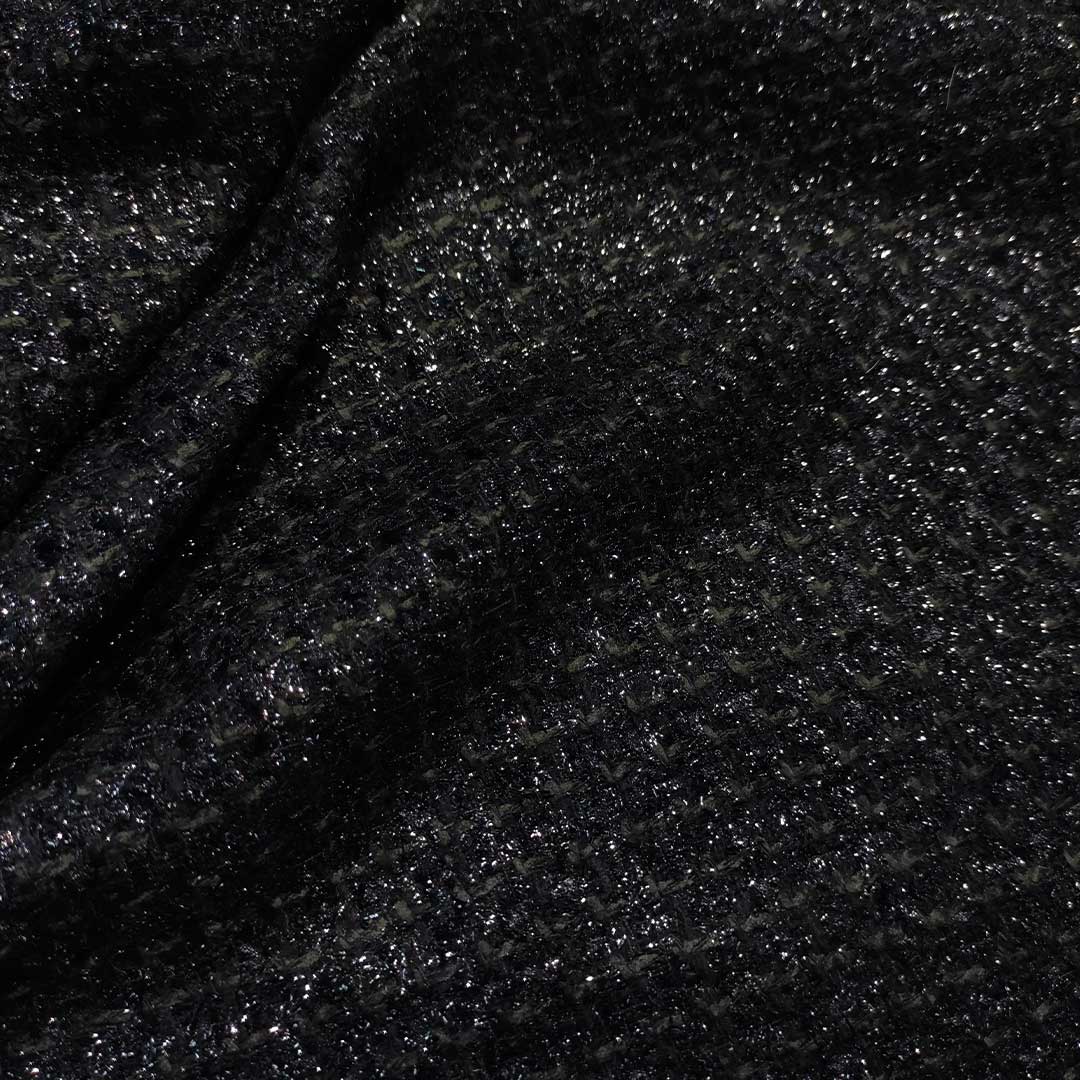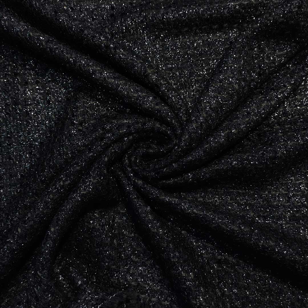 Tessuto Tweed Bouclé lurex tinta unita nero