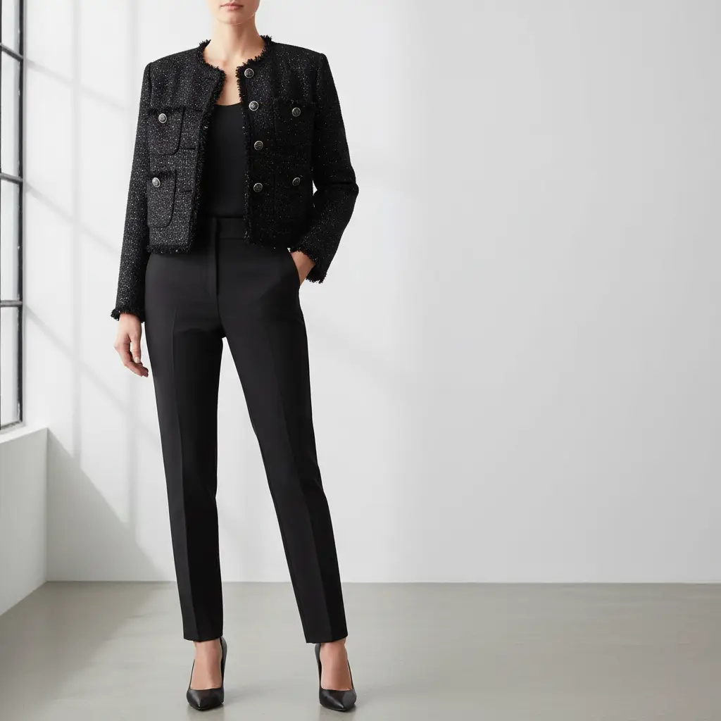 Tessuto Tweed Bouclé lurex dalla mano morbida e compatta, si presta alla realizzazione di capi esclusivi ed eleganti come l’iconica giacca in tweed della maison Chanel, si presta anche alla creazione di: gonne, abiti e borse scintillanti e ricercate.