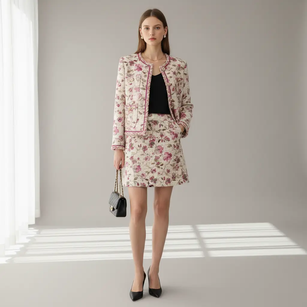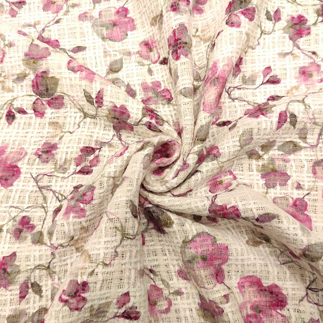 Tessuto Tweed Bouclé in cotone dalla mano morbida e compatta, si presta alla realizzazione di capi esclusivi ed eleganti come l’iconica giacca in tweed della maison Chanel, si presta anche alla creazione di: gonne, abiti e borse esclusive e ricercate.
