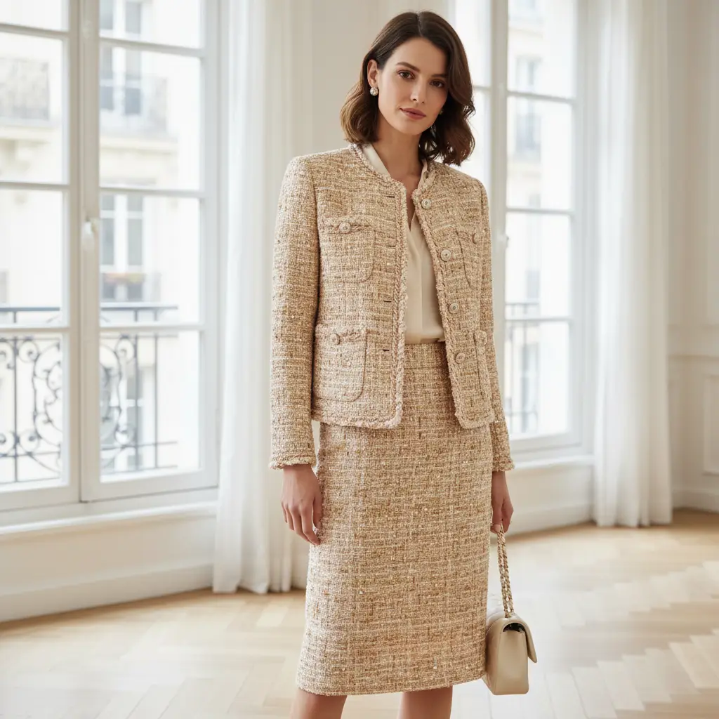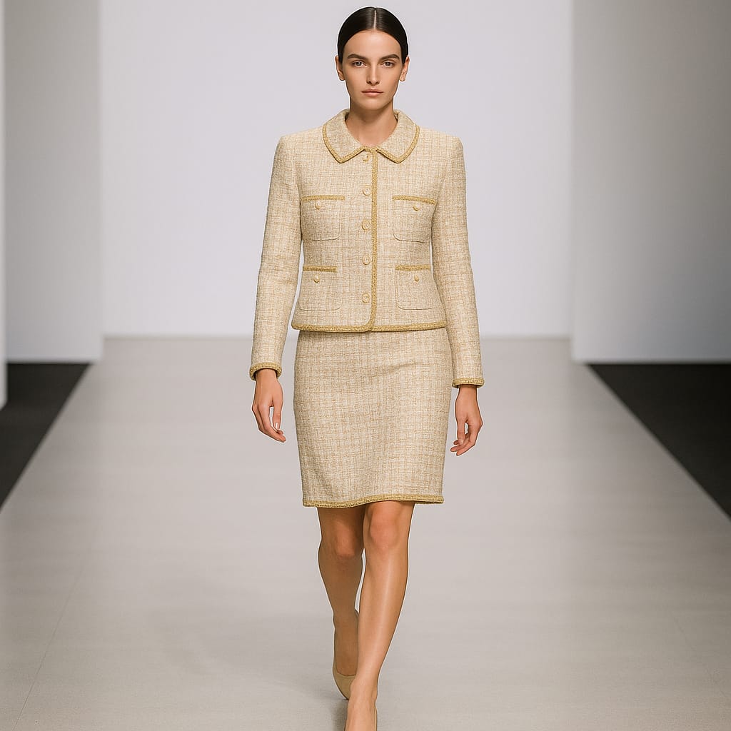 Tessuto Tweed Bouclé dalla mano morbida e compatta, si presta alla realizzazione di capi esclusivi ed eleganti come l’iconica giacca in tweed della maison Chanel, si presta anche alla creazione di: gonne, abiti e borse esclusive e ricercate.