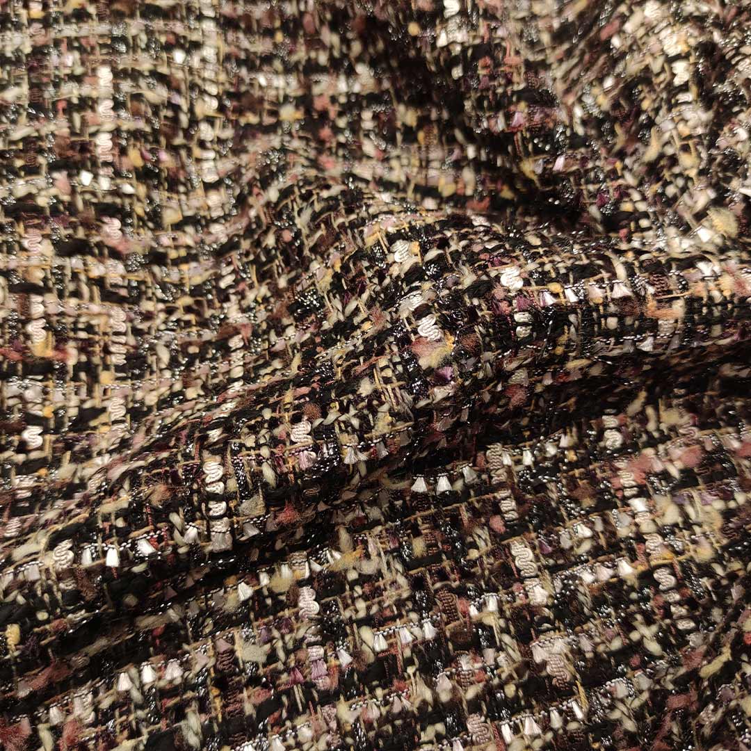 Tessuto Tweed Bouclé dalla mano morbida e compatta, si presta alla realizzazione di capi esclusivi ed eleganti come l’iconica giacca in tweed della maison Chanel, si presta anche alla creazione di: gonne, abiti e borse esclusive e ricercate.