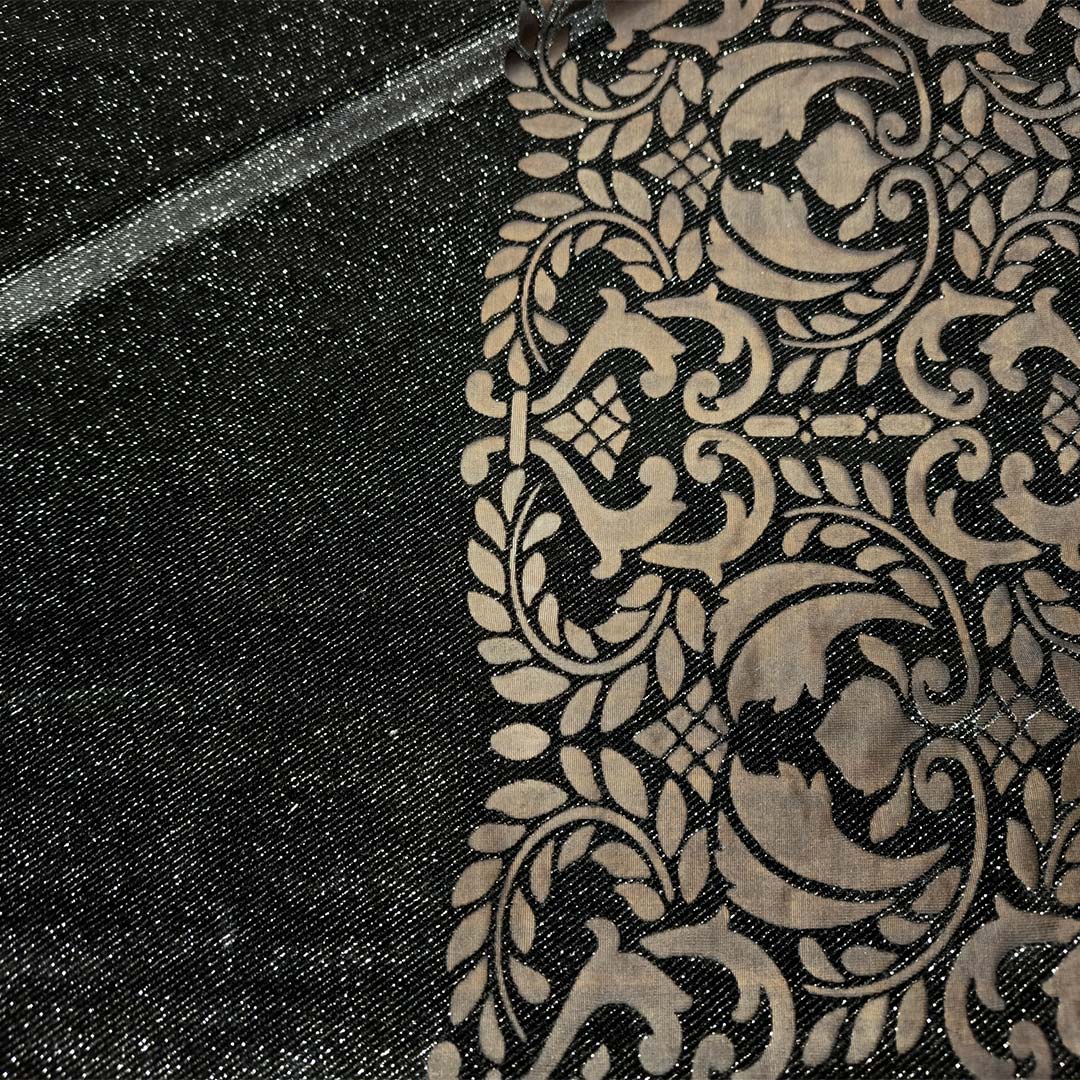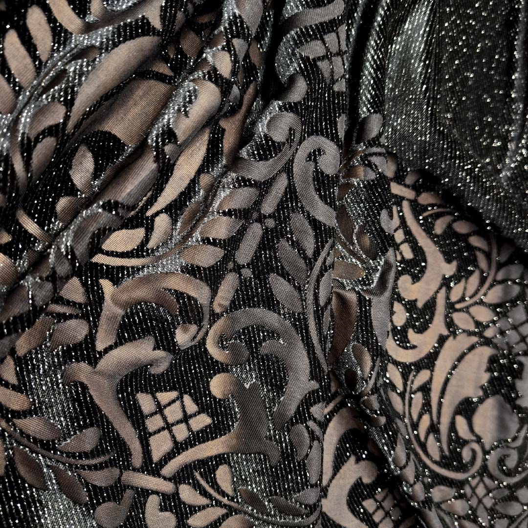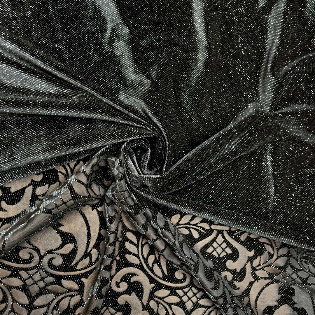 Tessuto Velluto devorè lurex motivo astratto nero – argento
