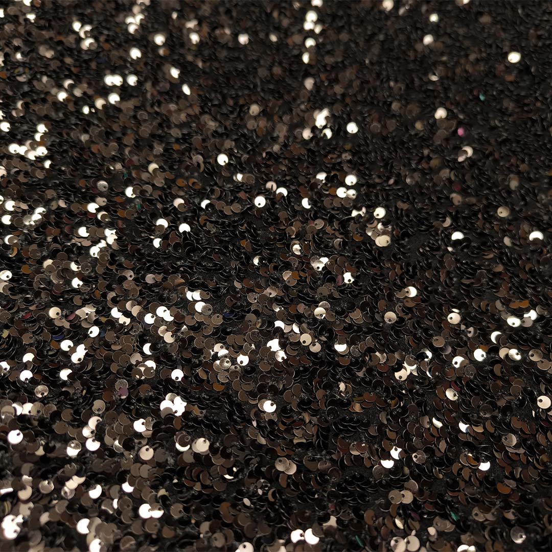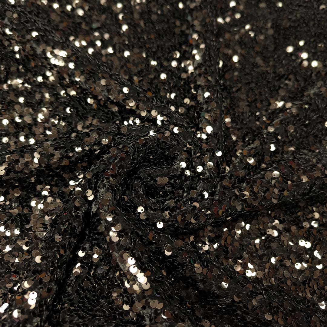 Tessuto Velluto elasticizato ricamato con paillettes tinta unita nero