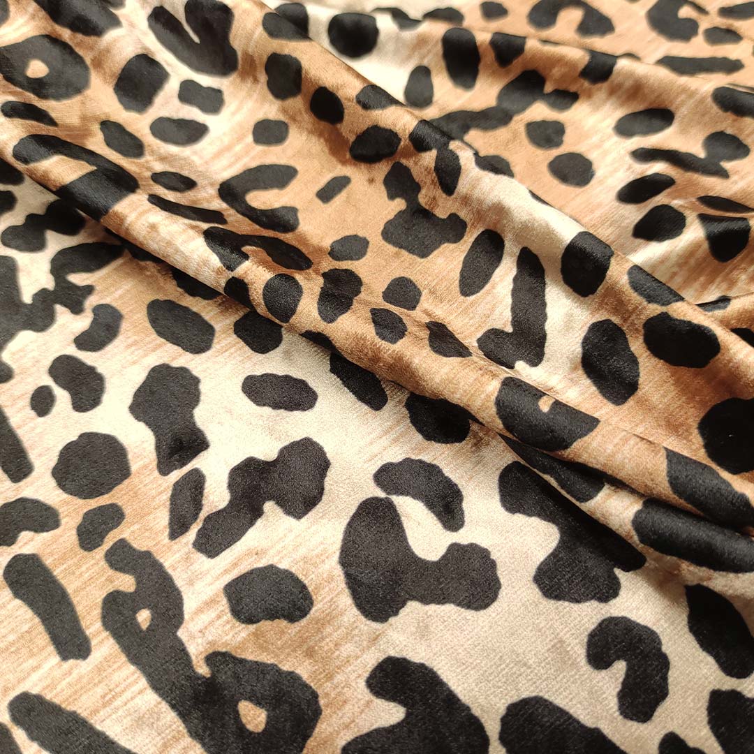 Tessuto Velluto elasticizzato a fantasia motivo animalier marrone – nero – beige
