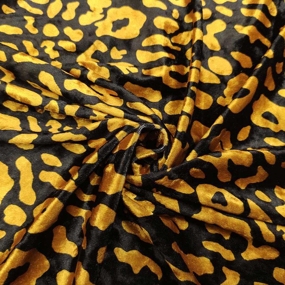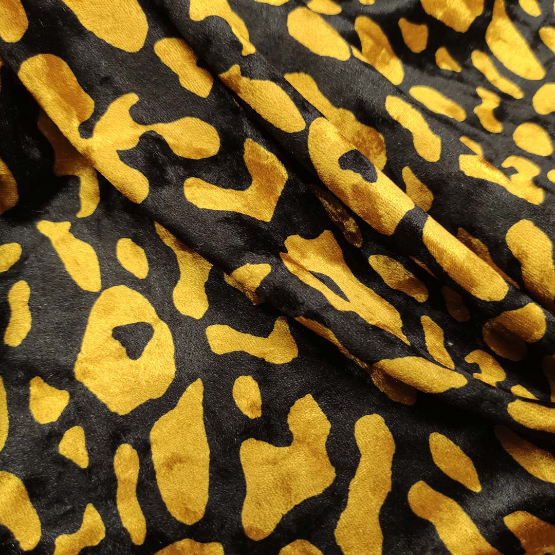 Tessuto Velluto elasticizzato a fantasia motivo animalier marrone – nero – oro