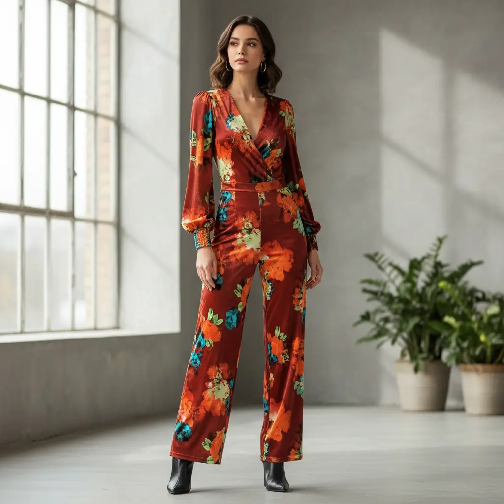Tessuto Velluto elasticizzato a fantasia dalla mano morbida e soffice ideale per realizzare capi adatti per la stagione autunno – inverno come: abiti, gonne, pantaloni e tute jumpsuit.