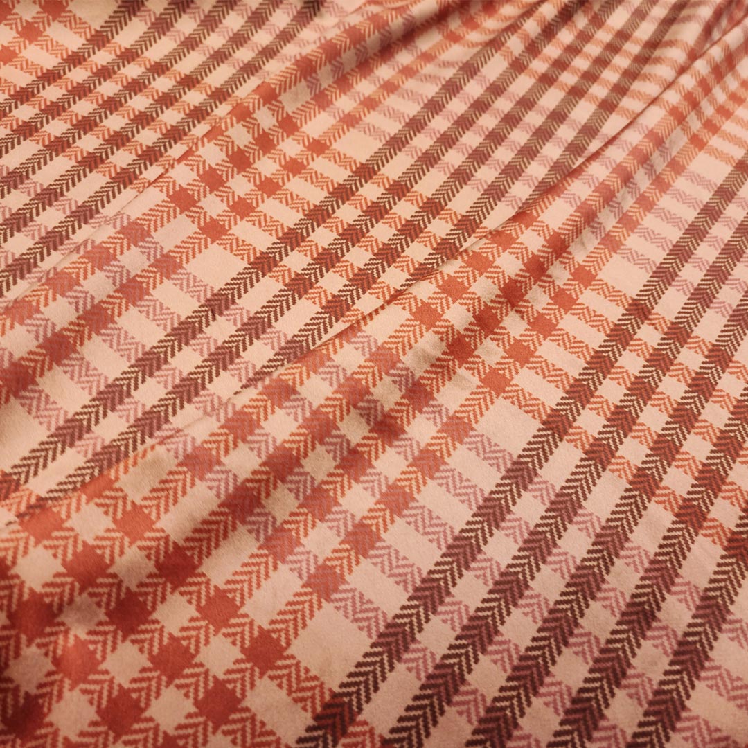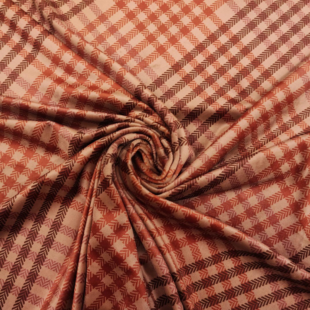 Tessuto velluto elasticizzato a fantasia motivo quadri coccio – cammello – marrone