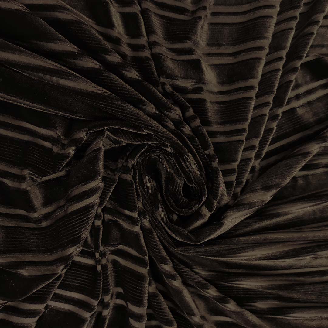 Tessuto velluto elasticizzato devorè motivo rigato nero