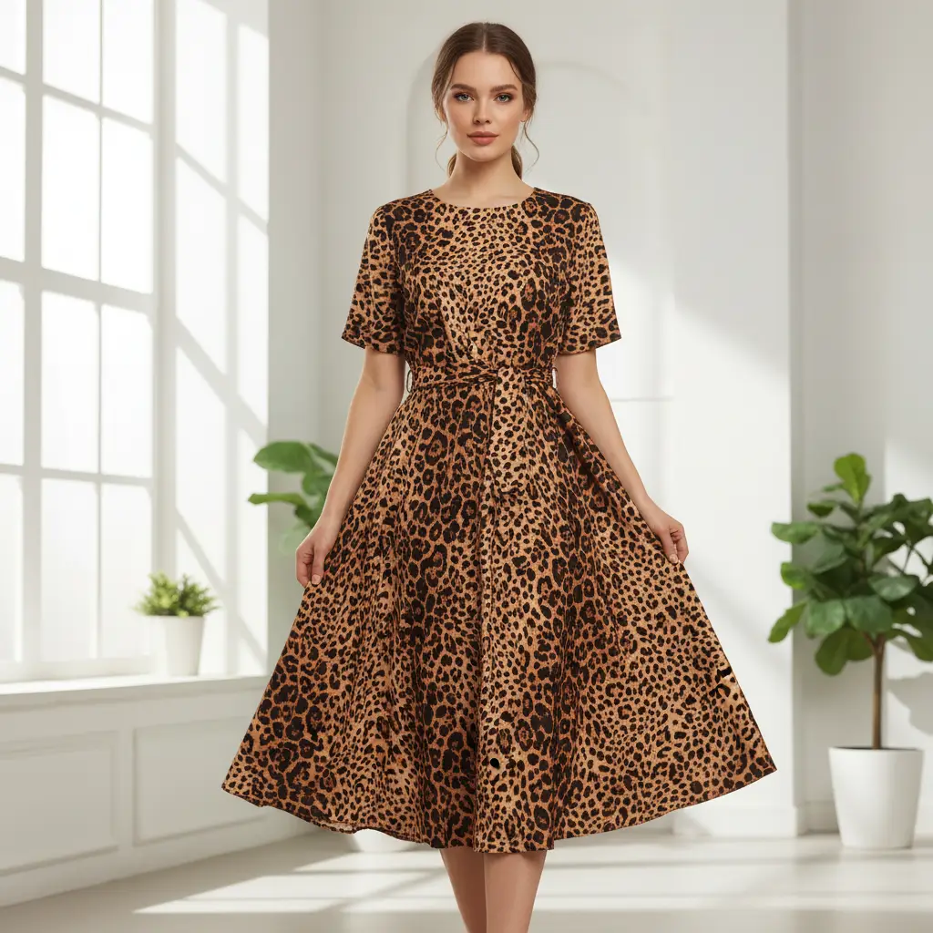 Tessuto Misto Viscosa a fantasia motivo animalier piccolo tabacco – marrone – marroncino