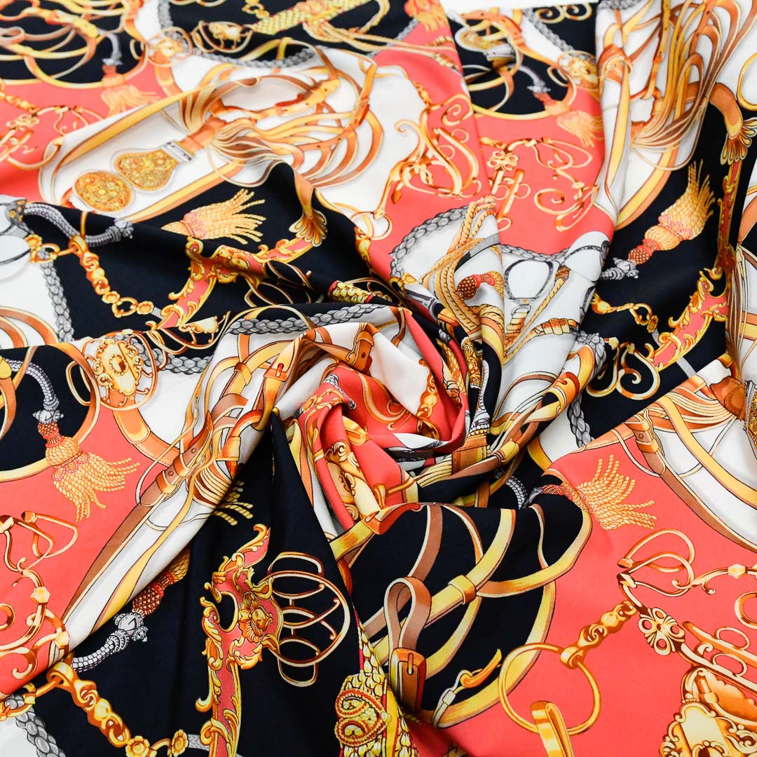Tessuto Misto Viscosa a fantasia motivo astratto corallo – nero