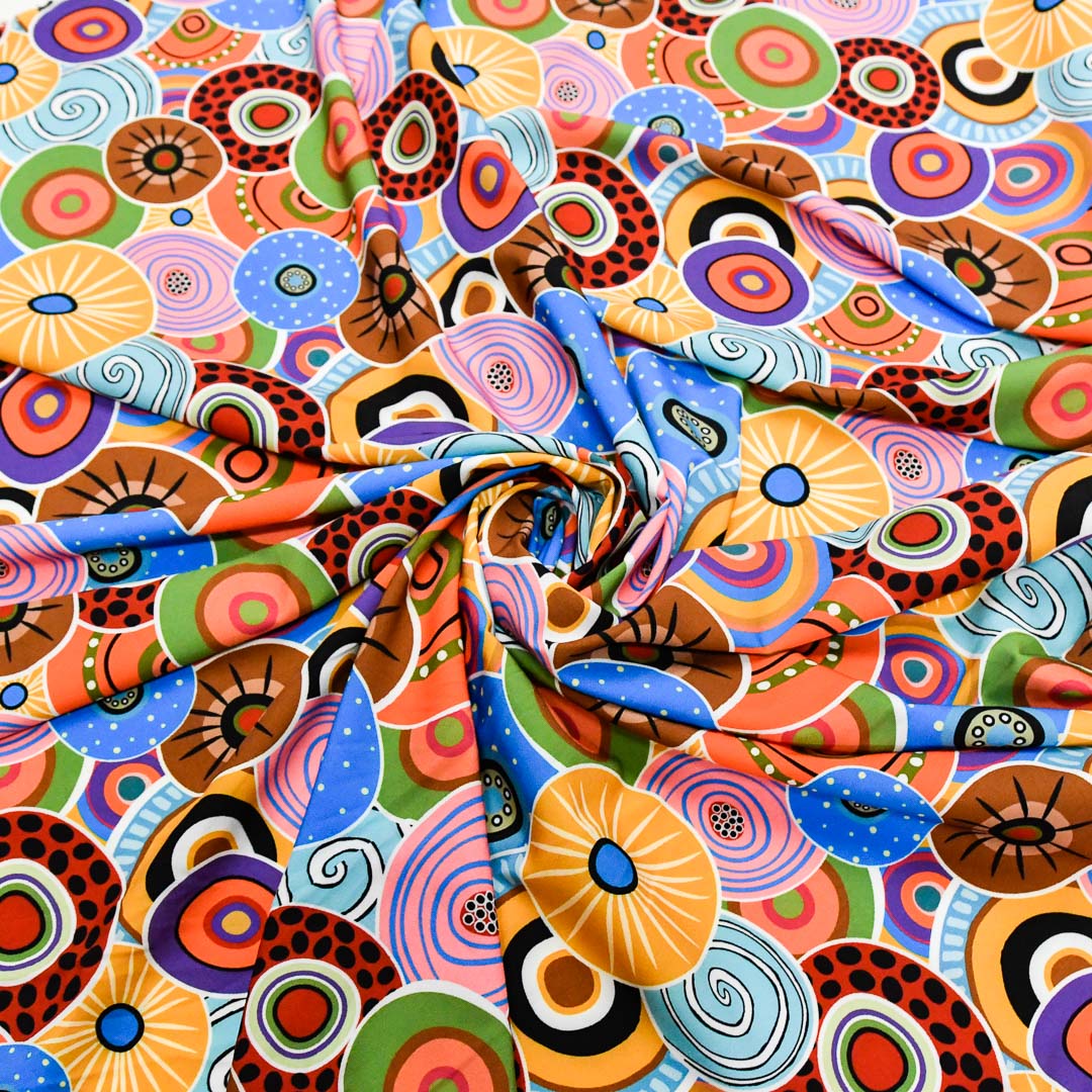 Tessuto Misto Viscosa a fantasia motivo astratto rosa – verde – senape