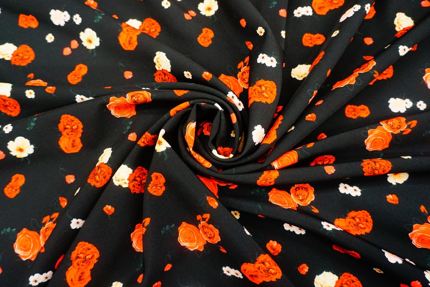 Tessuto Misto Viscosa a fantasia motivo floreale nero – rosso